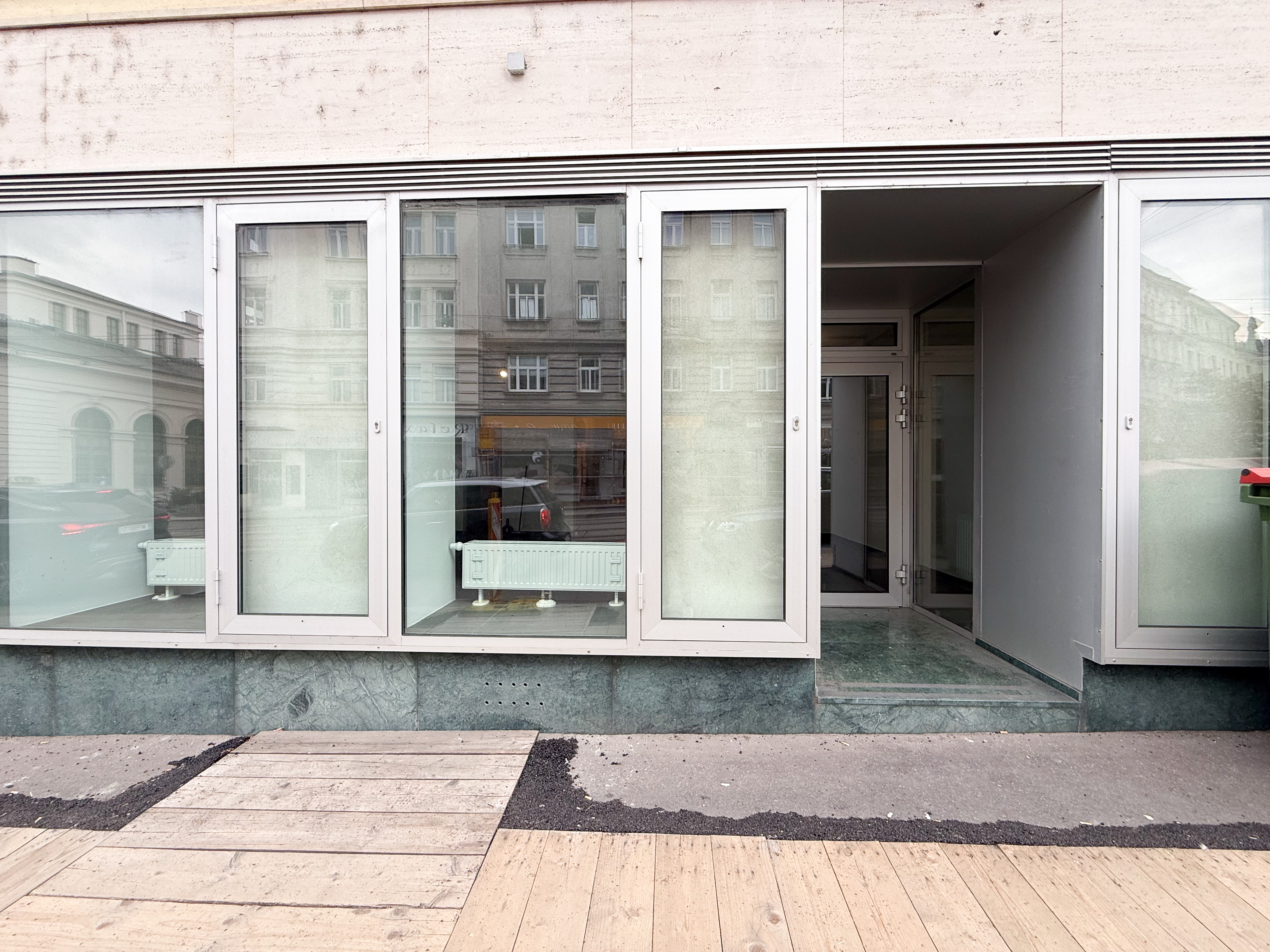 Besonders hervorzuheben ist die großzügige Ausstellungsfläche zur Nußdorfer Straße , die für eine ausgezeichnete Präsentation von Waren und eine hohe Kundenfrequenz sorgt.