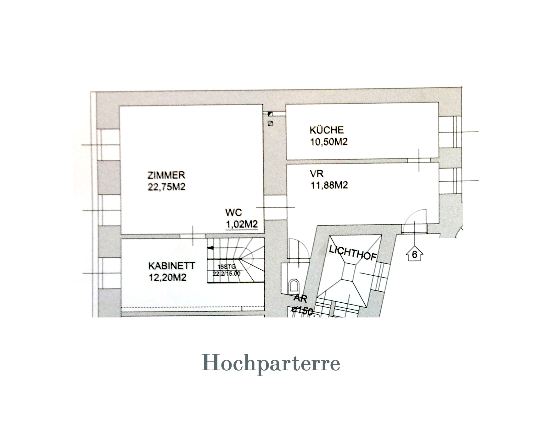 Die Wohnung verfügt über eine Fläche von rund 58,44 m². Zwei Zimmer, sowie Vorraum, separate Toilette und Küche stehen zur Verfügung. Die Wohnfläche selbst bietet viel Potential und überzeugt mit Raumhöhe und Altbauflair. Die Möglichkeit diese Wohnung räumlich vom Geschäftslokal abzutrennen, ist gegeben.