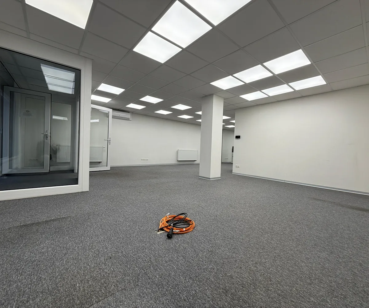 Der großzügige Hauptraum bietet vielfältige Gestaltungsmöglichkeiten – von offenen Arbeitsbereichen bis hin zu flexibel nutzbaren Zonen für Teamarbeit oder Kundenempfang. Ergänzt wird dieser durch einen separaten Besprechungs- beziehungsweise Seminarraum, der sich ideal für Meetings, Präsentationen, Schulungen oder konzentriertes Arbeiten in ruhiger Atmosphäre eignet.