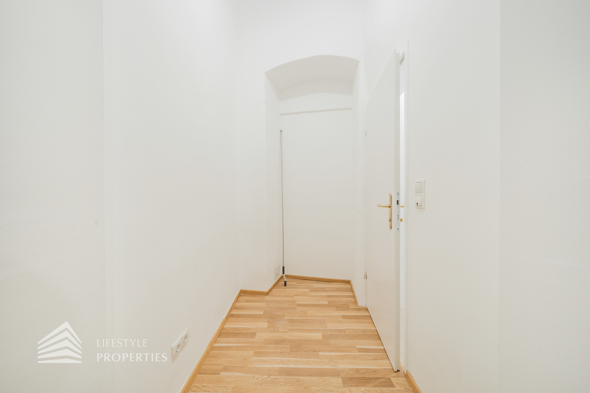 Das Objekt, welches im Erdgeschoss liegt, umfasst insgesamt ca. 35,24 m². Über die gesamte Höhe und Breite der Frontseite ist eine Auslage vorhanden. Sie betreten das Lokal gassenseitig und gelangen sofort in den größten Raum mit ca. 20,95 m². Hier befinden sich sowohl ein Fenster zur Straßenseite. als auch eine 60x60 cm Lichtkuppel mit durchschlagsicherem Glas. Im hinteren Bereich des Lokals befindet sich eine Küche mit ca. 8,76 m² mit anschließender Türe in das Stiegenhaus. Des Weiteren gibt es zusätzlich einen kleinen Vorraum mit einer Lichtkuppel durch diese man zur Toilette gelangt.