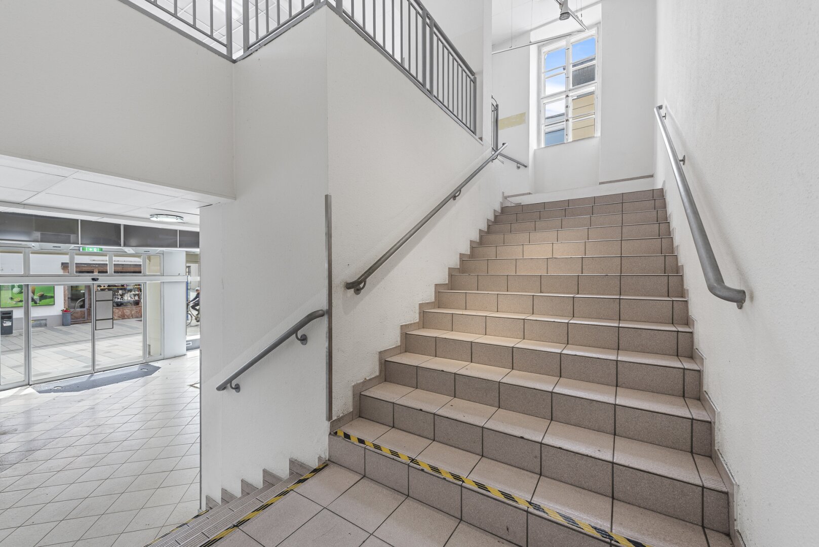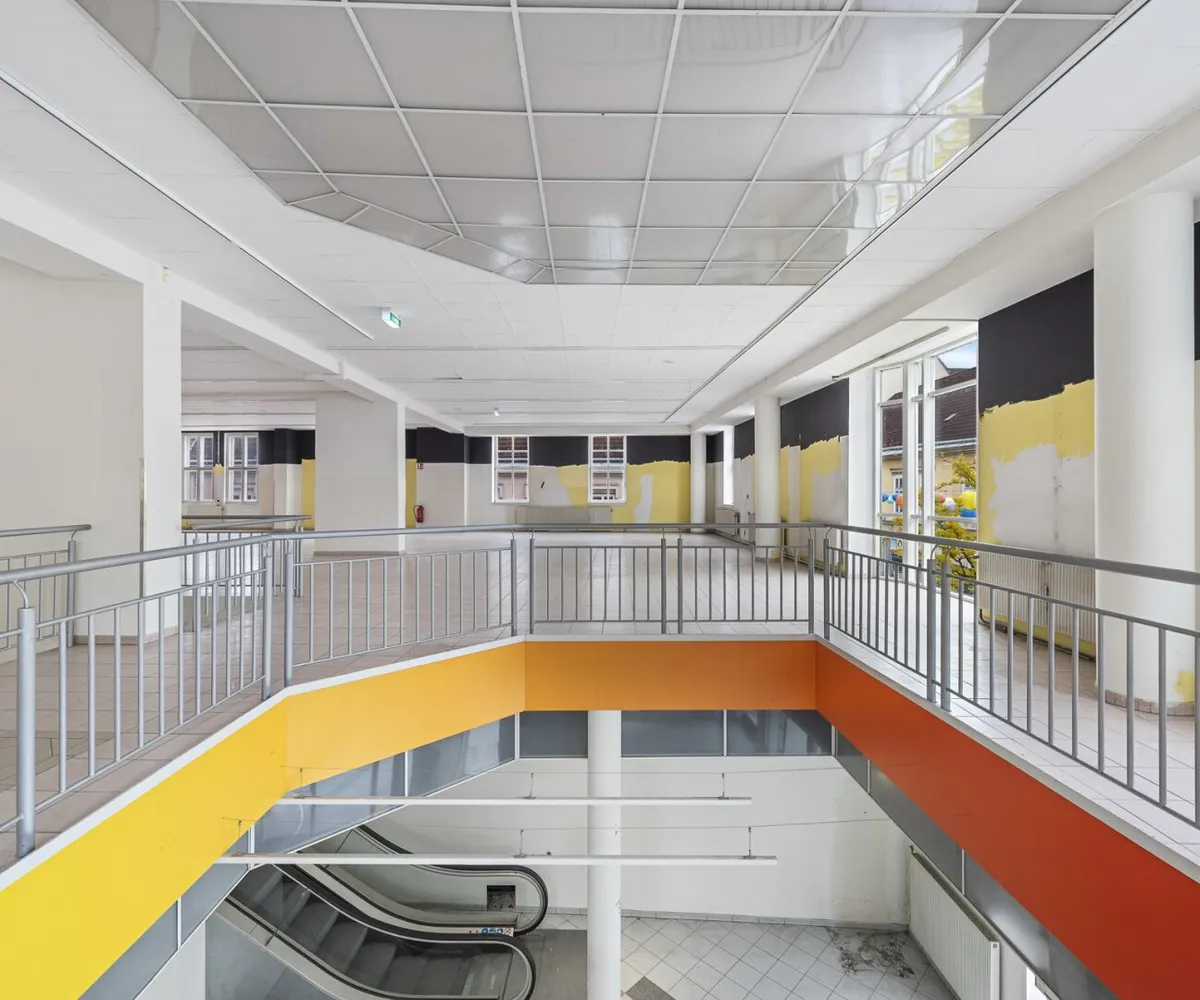 Dem aber noch lange nicht genug: Die Gesamtnutzfläche von ca. 709 m² verteilt sich auf zwei wunderschöne, großzügig offene und herrlich lichtdurchflutete Ebenen , bietet Raum für unterschiedlichste Nutzungskonzepte und punktet mit einer der Immobilie zusätzlich Charakter verleihenden Rolltreppe . Auch ein Lift verbindet die beiden Etagen miteinander. Über dem Eingangsbereich im Erdgeschoß wurde zudem eine Galerie geschaffen, die Freiraum und Exklusivität vermittelt.