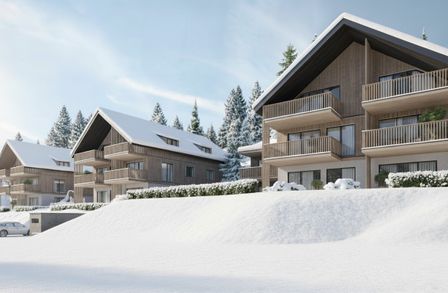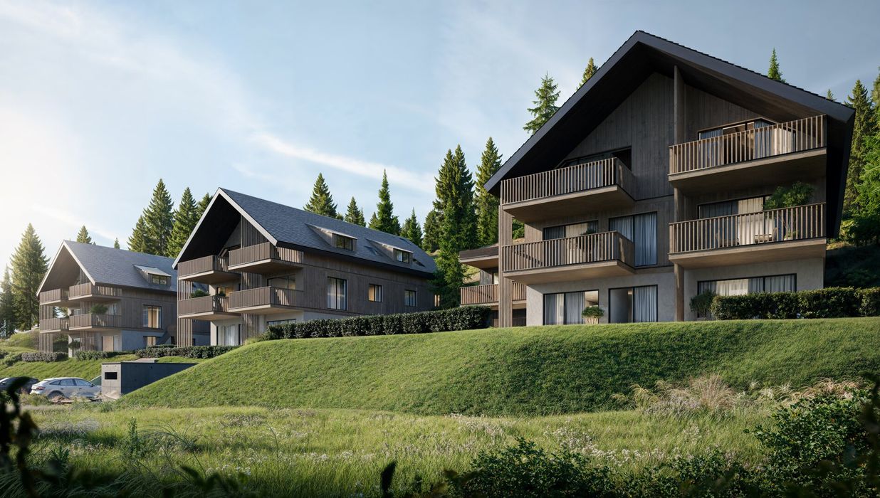 Inmitten der atemberaubenden Kärntner Nockberge, auf der sonnigen Hochrindl, entstehen drei Häuser, mit je 8 Wohnungen.