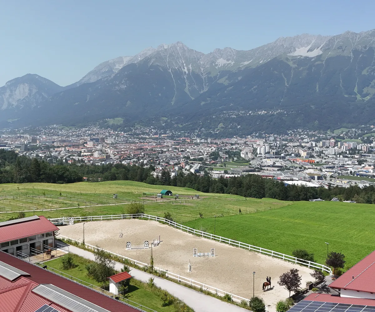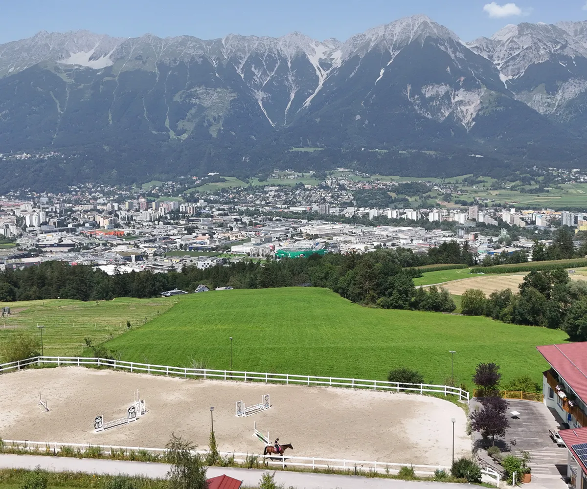 Das Café-Restaurant befindet sich in traumhafter Lage direkt am Pferdesportzentrum in Aldrans, einer malerischen Gemeinde unweit von Innsbruck. Gäste können hier den spektakulären Panoramablick über Innsbruck und die beeindruckende Bergkulisse, sowie den Reitsport genießen. Die direkte Lage am Pferdesportzentrum schafft eine besondere Atmosphäre für Pferdeliebhaber und Sportfans. Der Standort vereint ideal das naturnahe Erlebnis des Reitsports mit der Möglichkeit, in gelassener Atmosphäre zu speisen und zu verweilen.