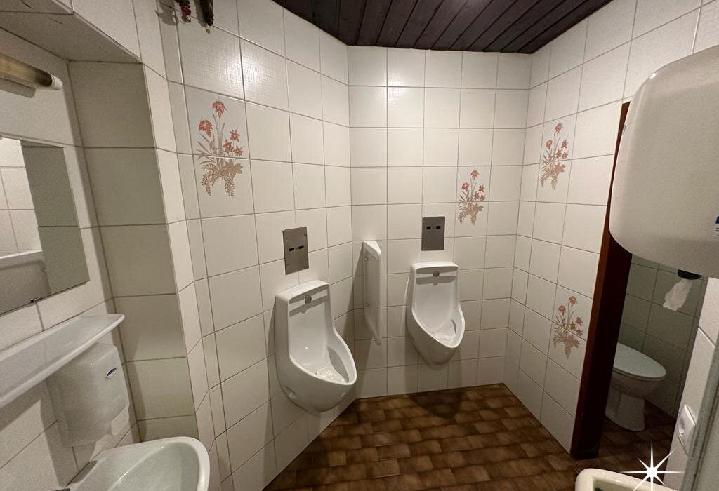 An der Westseite im Eingangsbereich befindet sich eine große Terrassenfläche, die seit Jahrzehnten gastronomisch genutzt wird. 80 Personen innen (12 Tische), 32 Personen im Außenbereich (7 Tische) bestuhlt.