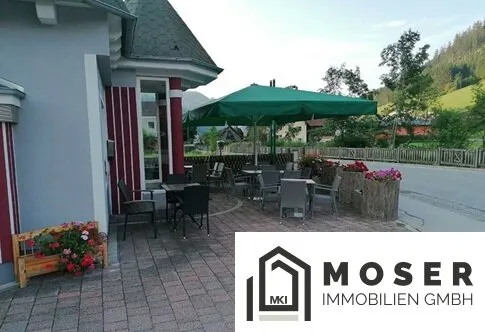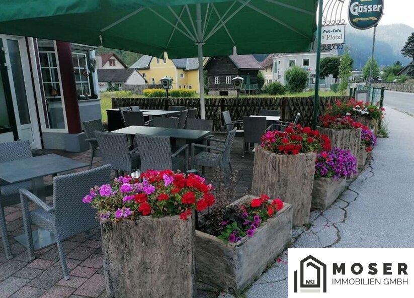 Der Außenbereich wird hauptsächlich als Gastgarten genutzt mit 50 Sitzplätzen - teilweise überdacht.