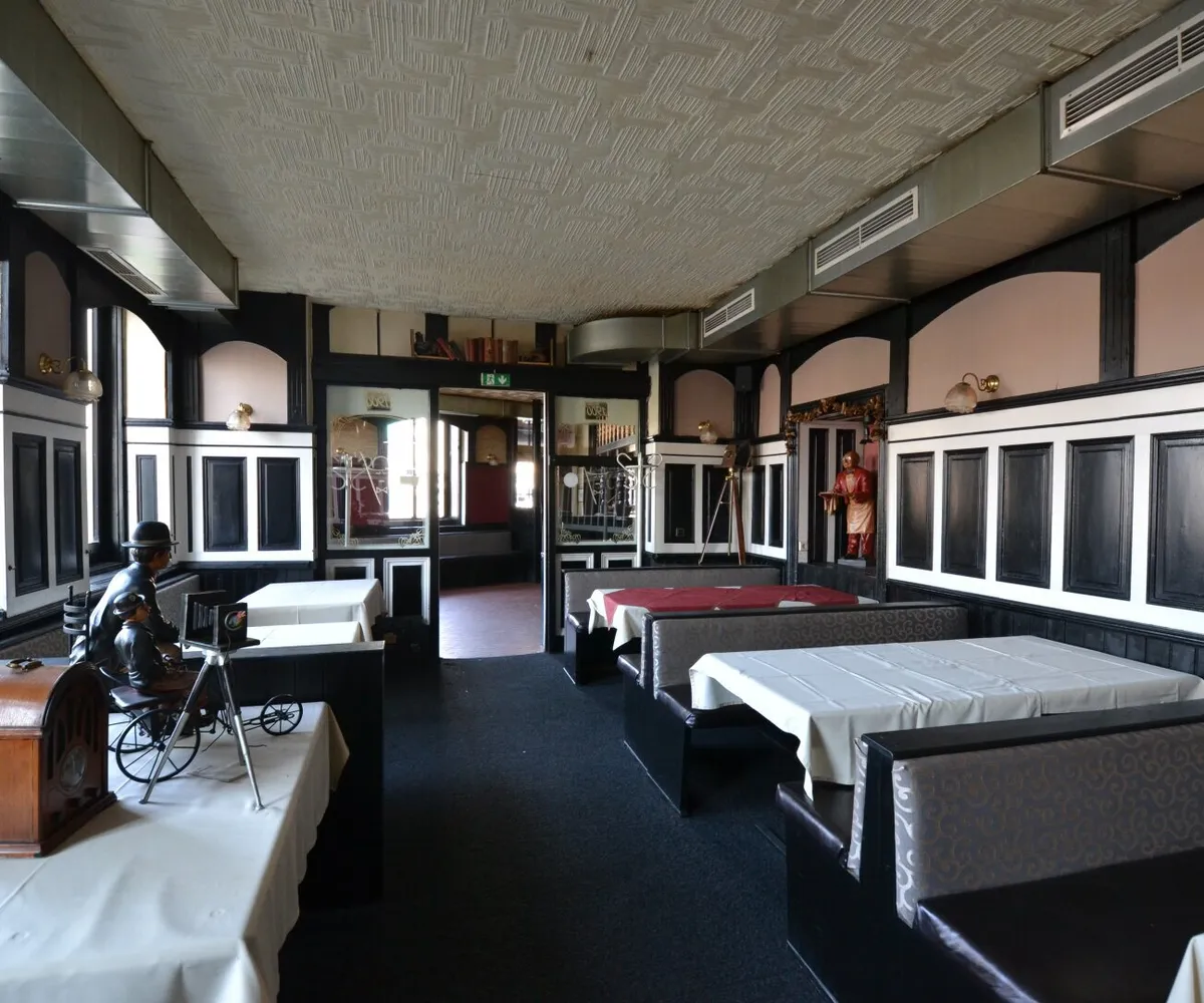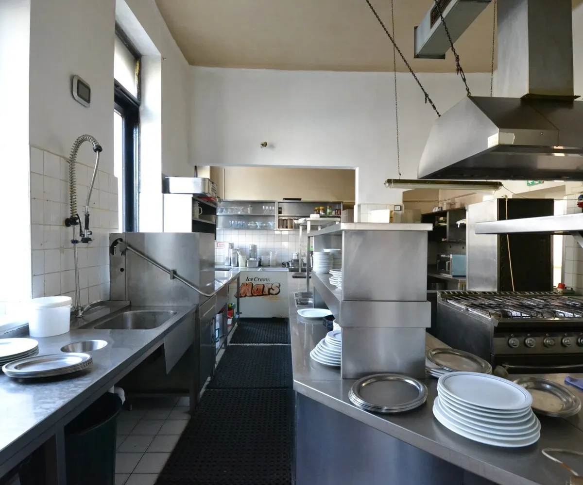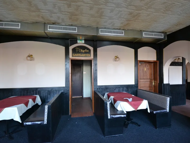 Das Lokal erstreckt sich über eine Fläche von knapp 214 m 2 . Ebenso gibt es einen Schanigarten im Innenhof und einen Keller mit ca. 106 m 2 . Die Geschäftsfläche teilt sich auf in mehrerer aneinander gereihte Gasträume, eine voll ausgestattete Küche, eine Garderobe sowie Toiletten für die Gäste. Die Räumlichkeiten sind in einem gepflegten Zustand.