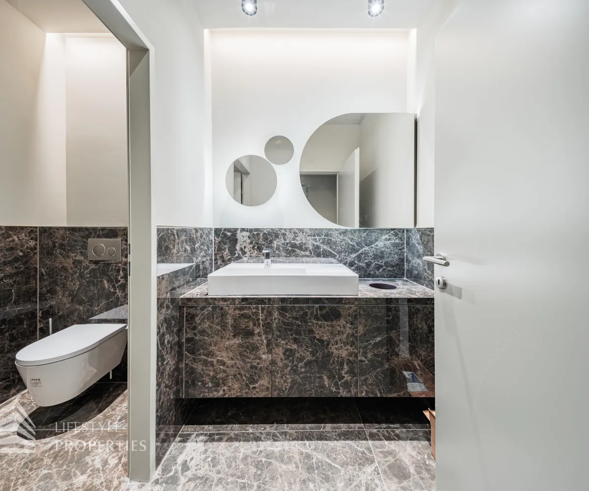 Die Toiletten sind mit exklusiven Fliesen und hochwertigen Sanitär ausgestattet.