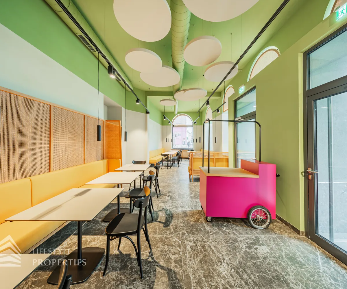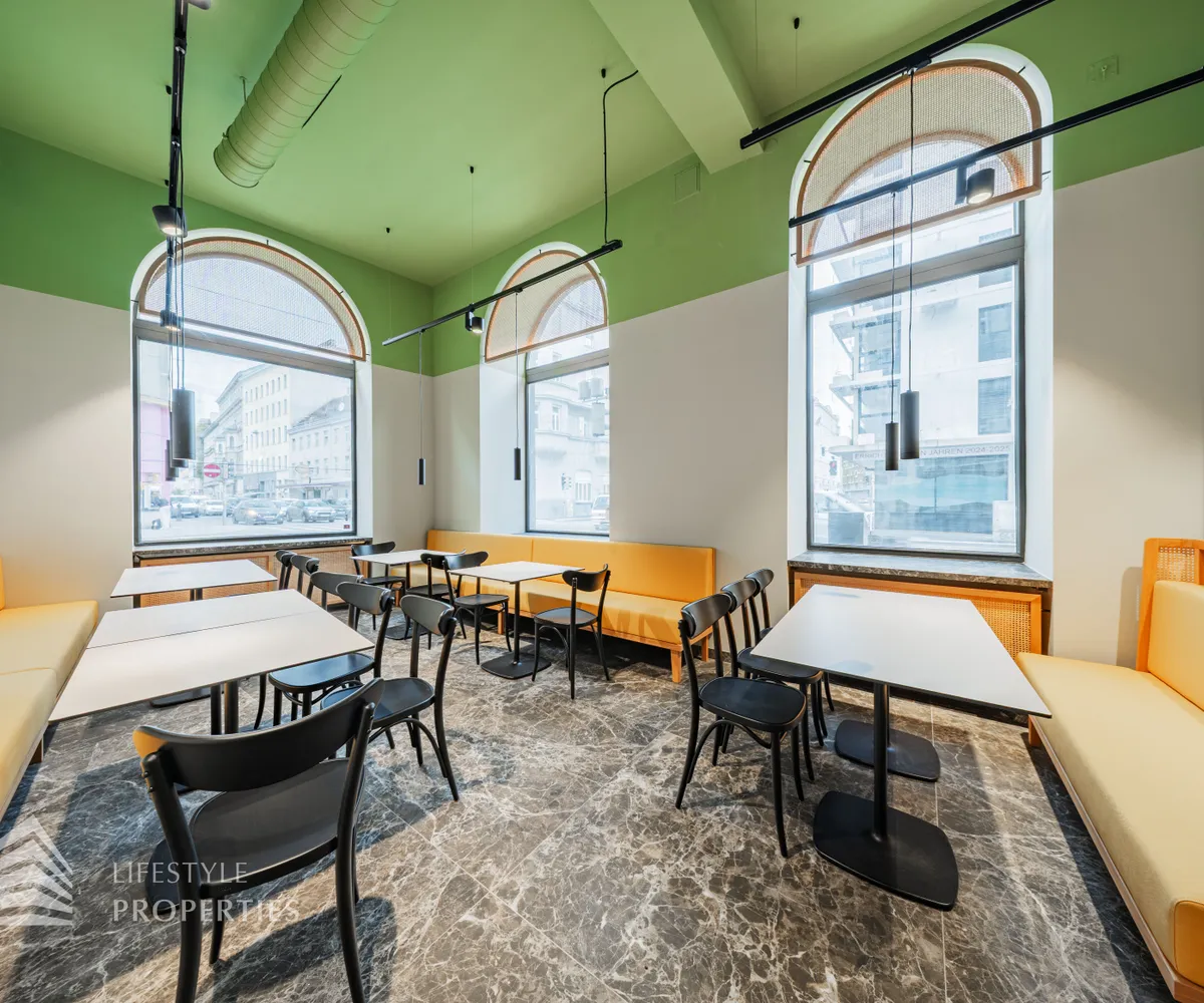 Zur Vermietung gelangt ein ca. 141 m² großes vollausgestattetes Gastronomielokal im 5. Wiener Gemeindebezirk.