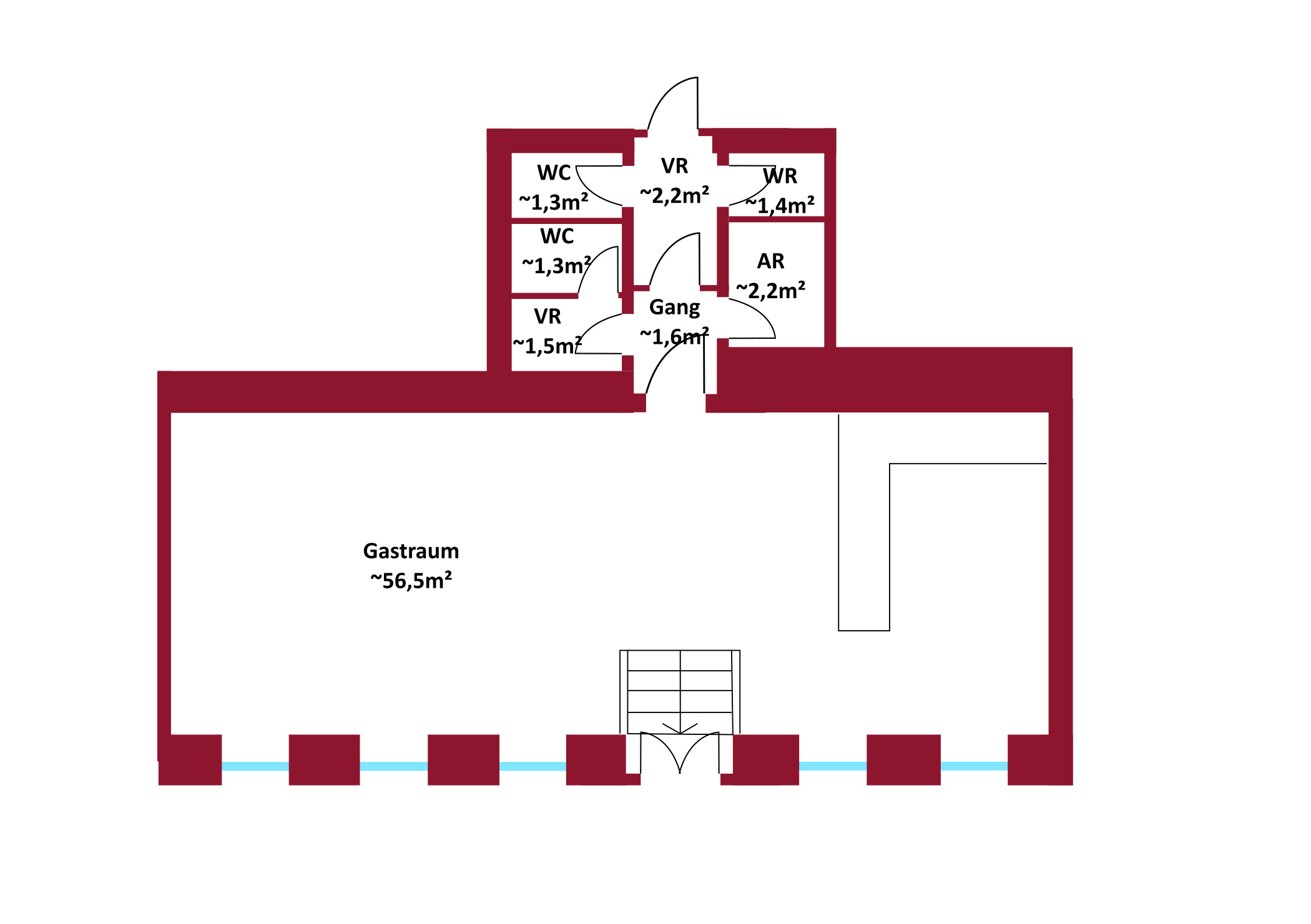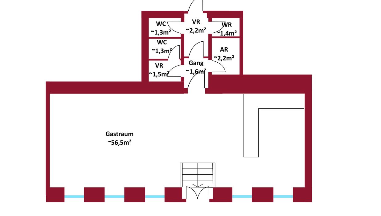 Das Geschäftslokal mit knapp 68,09 m² Wohnfläche gliedert sich in folgende, funktionelle Raumaufteilung: