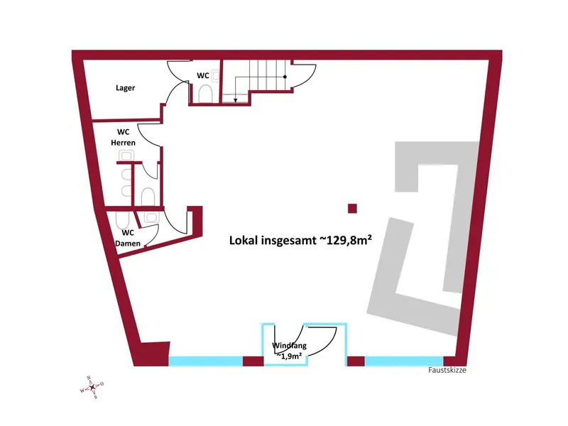 Gelegen in einer der TOP-Lagen der Wiener Innenstadt , ausgestattet mit einer breitflächigen Fensterfront bietet es die richtigen Voraussetzungen für einen belebten Betrieb.