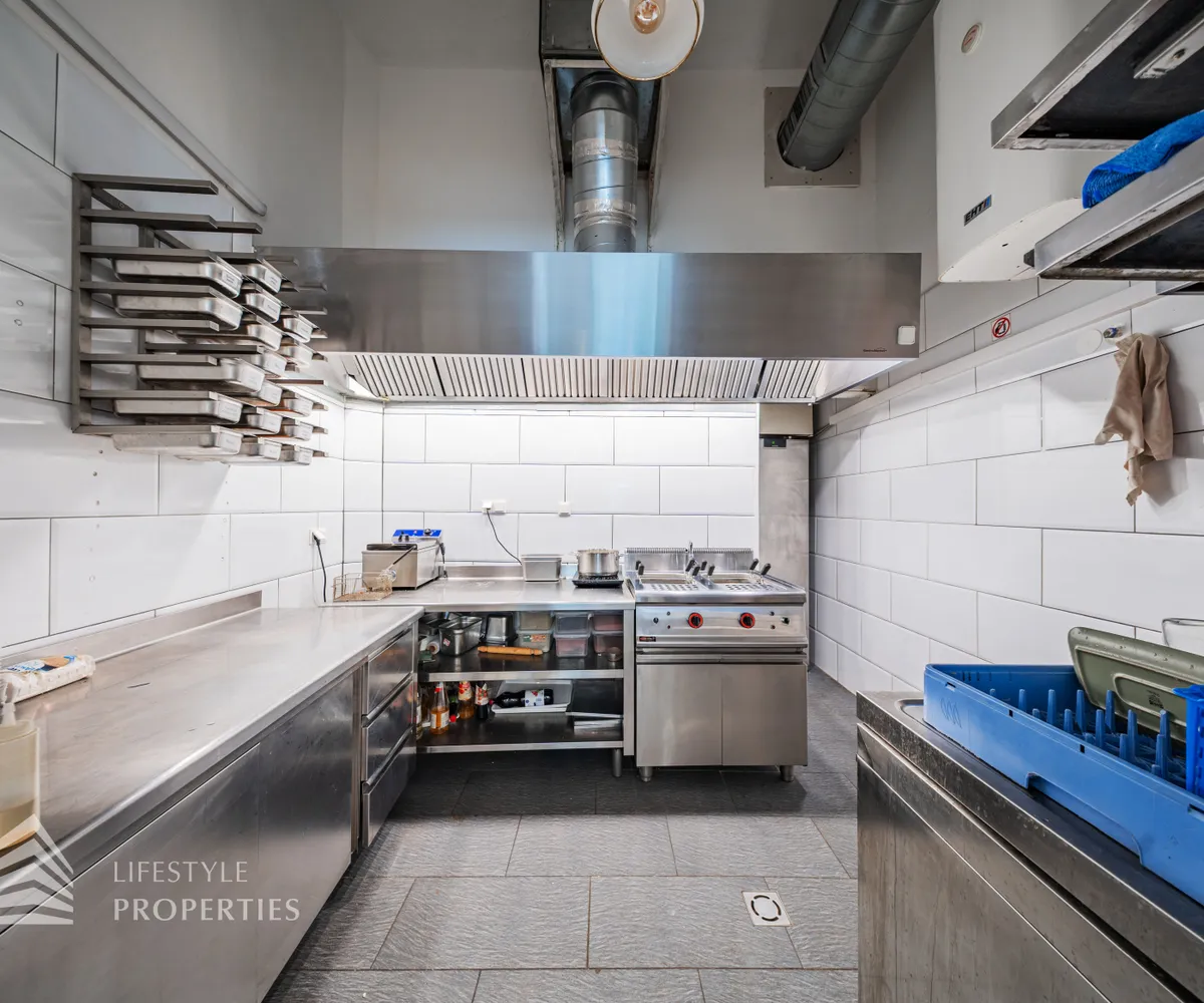 Eine seltene Gelegenheit für Unternehmer:innen, die einen sofort nutzbaren Standort mit hohem Entwicklungspotenzial und ausgezeichneter Infrastruktur suchen! Das Lokal verfügt über ca. 140 m² Nutzfläche auf einer Ebene und ist durch große Schaufensterflächen lichtdurchflutet und einladend gestaltet. Die moderne Ausstattung sowie die klare Raumaufteilung schaffen ein stilvolles und angenehmes Ambiente, welches sich sowohl für gastronomische als auch für andere geschäftliche Konzepte hervorragend eignet. Aktuell wird das Objekt als Café-Snackbar mit leichter Küche genutzt. Die voll ausgestattete Küche ist in Betrieb. Die gastronomische Nutzung ist ohne offene Flammen oder Frittieren in Öl genehmigt, wobei Zubereitungen mit Combidampfer, Frittieren auf Wasserbasis und ähnlichen Methoden möglich sind. Der gesamte Boden ist mit modernen keramischen Fliesen (verfließt) ausgestattet. Das Objekt verfügt über einen großzügigen Hauptraum mit stilvollem Schankbereich, einen offen verbundenen, aber visuell leicht abgeschirmten zweiten Bereich, zwei separate, hochwertig ausgestattete Sanitäranlagen, einen Lagerraum sowie einen zusätzlich möblierten, derzeit als Garderobe und Büro genutzten Nebenraum, der in die bestehende Betriebsanlagengenehmigung integriert und erweitert werden kann.