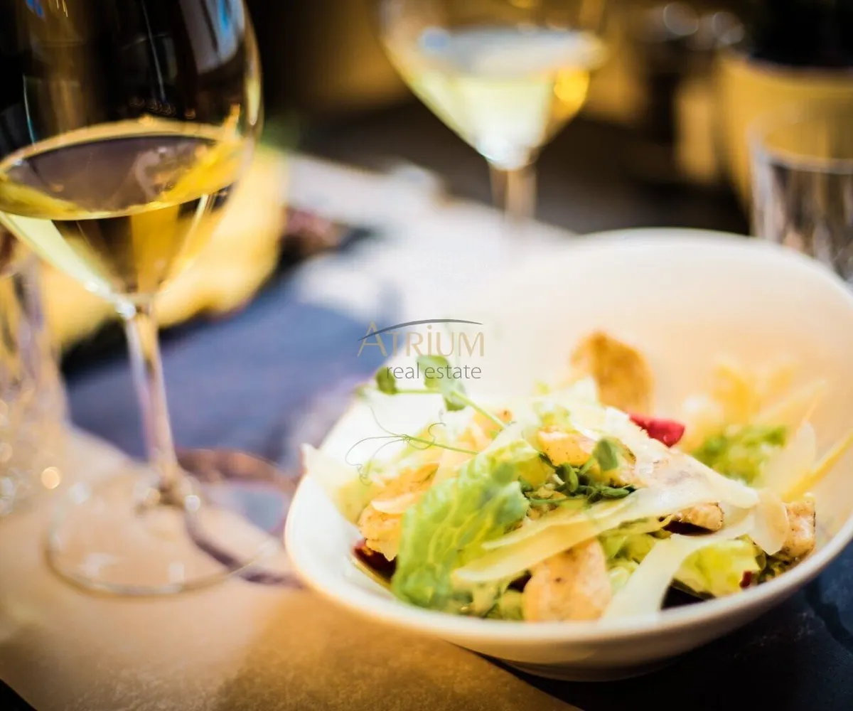 Das Ecklokal bietet großzügige Innenräumlichkeiten, die zwei große Gästebereiche mit Bar, und eine Küche umfassen.