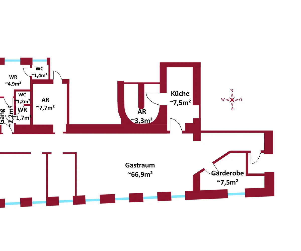 Das Geschäftslokal mit knapp 107,66 m² Wohnfläche gliedert sich in folgende, funktionelle Raumaufteilung: