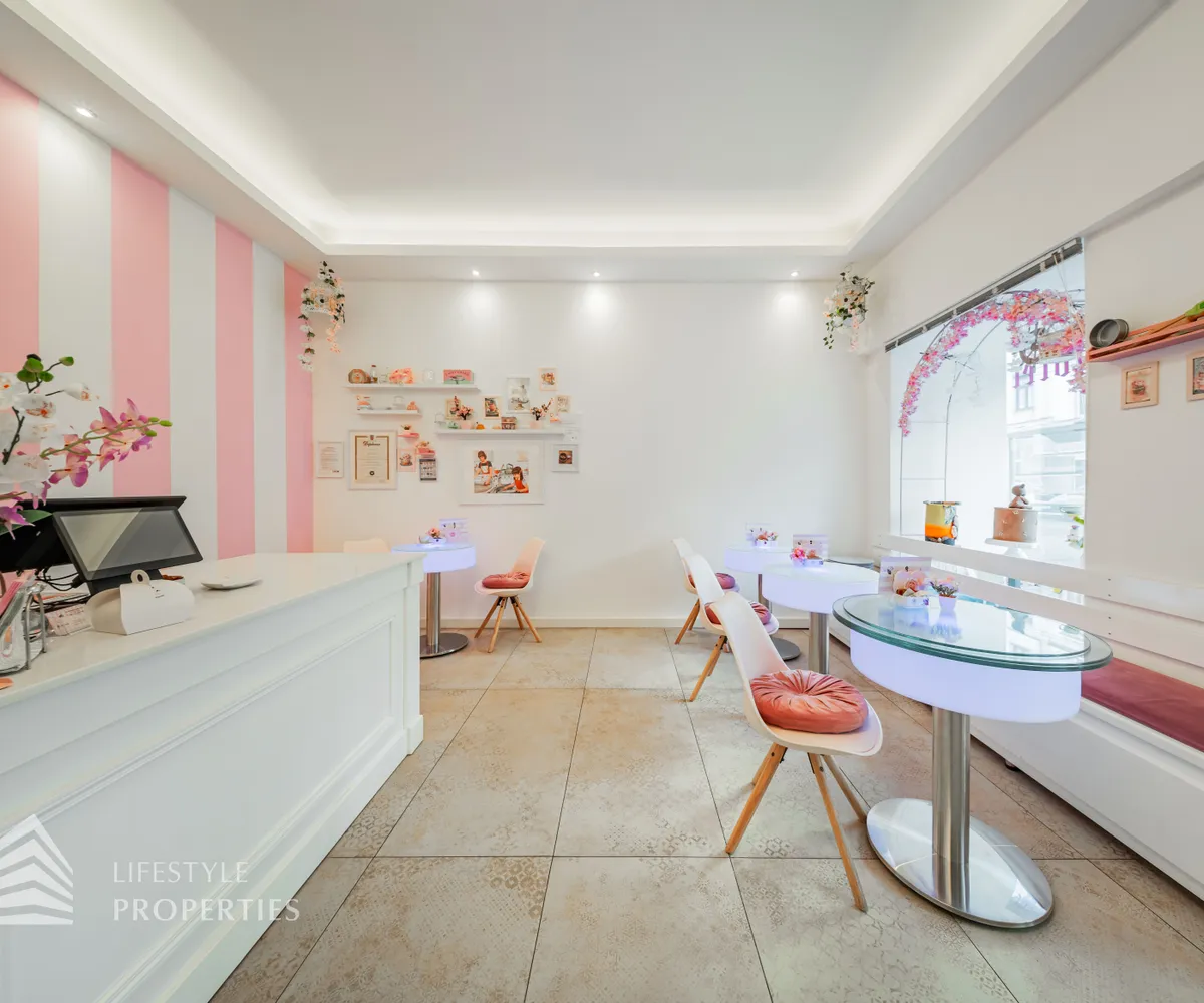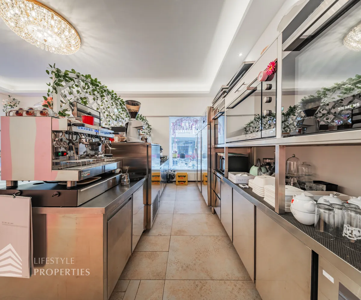 Dieses vollständig eingerichtete Café-Konditorei-Lokal präsentiert sich als sofort betriebsbereite Adresse für ein anspruchsvolles Gastronomiekonzept. Der Betrieb ist im Stil einer französisch inspirierten Pâtisserie gestaltet und überzeugt durch seine hochwertige Ausstattung, sein gepflegtes Erscheinungsbild und sein harmonisches Ambiente.