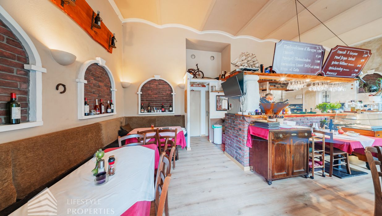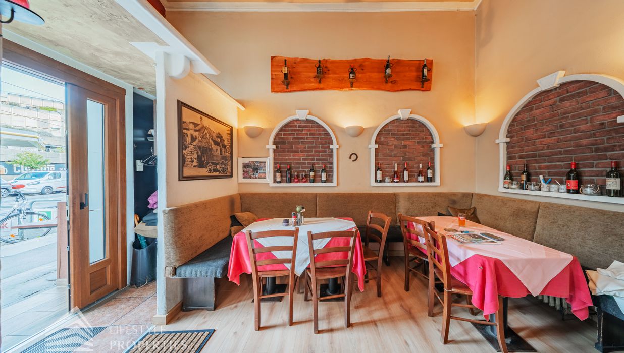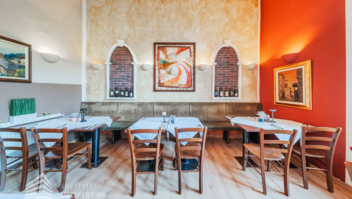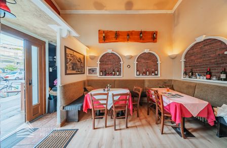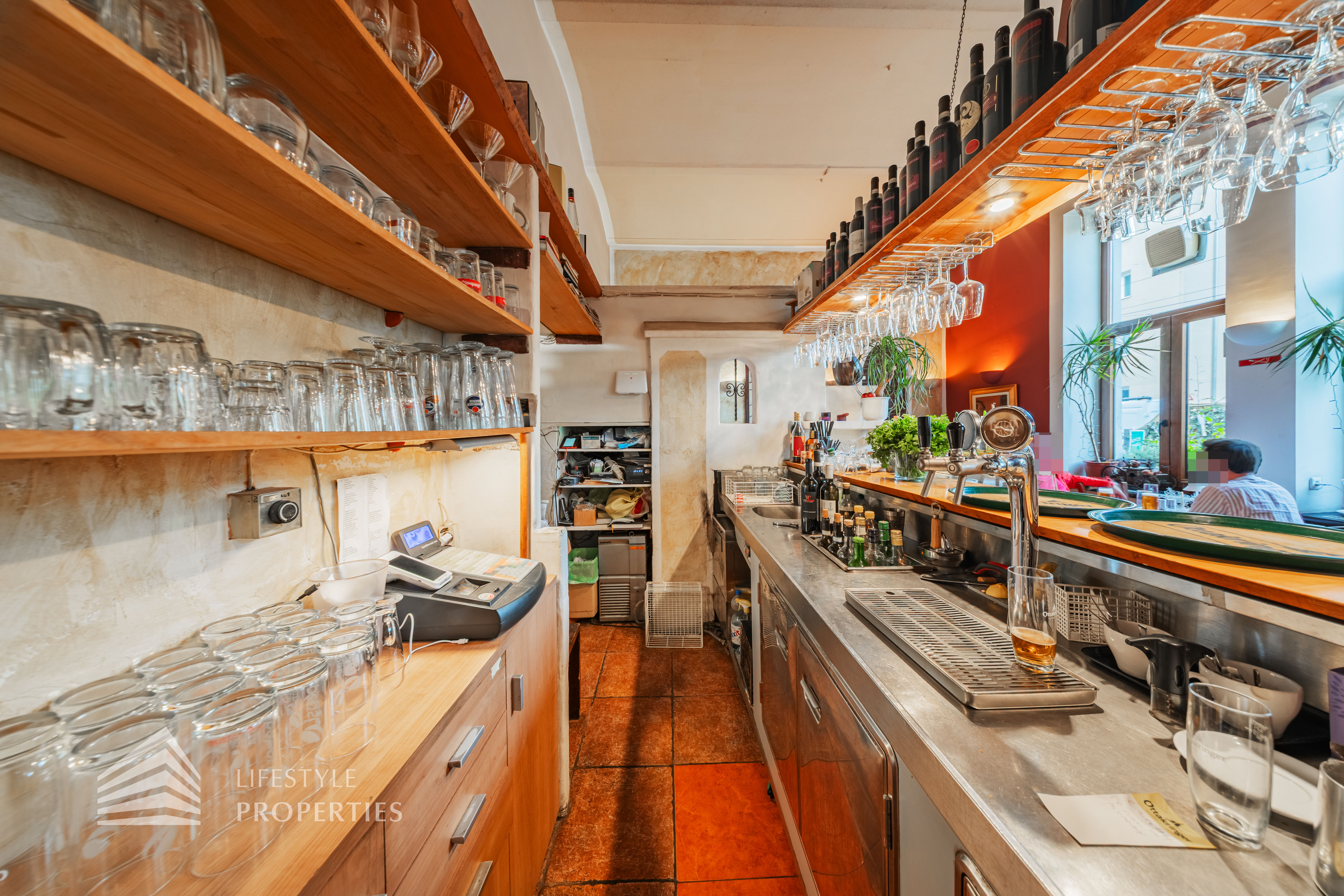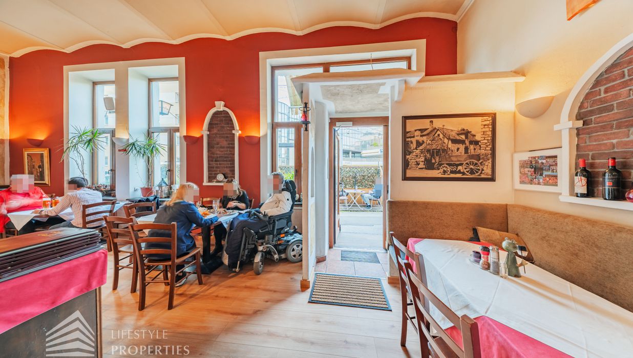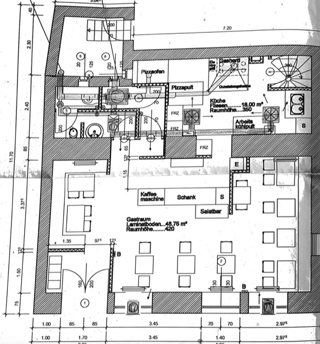 Das Restaurant befindet sich in einer sehr frequentierten Lage mit hoher Sichtbarkeit und besteht aus einem großzügigen Gastraum mit ca. 49 m²,der Küche mit ca. 18 m² und den Sanitärräumen mit ca. 6 m². Gleich beim Eintreten befindet sich der einladende Gastraum mit einer großen Bar, dahinter die offene Küche samt Pizzaofen – perfekt für authentische mediterrane Küche. Gäste-WCs sind direkt im Erdgeschoss vorhanden.
