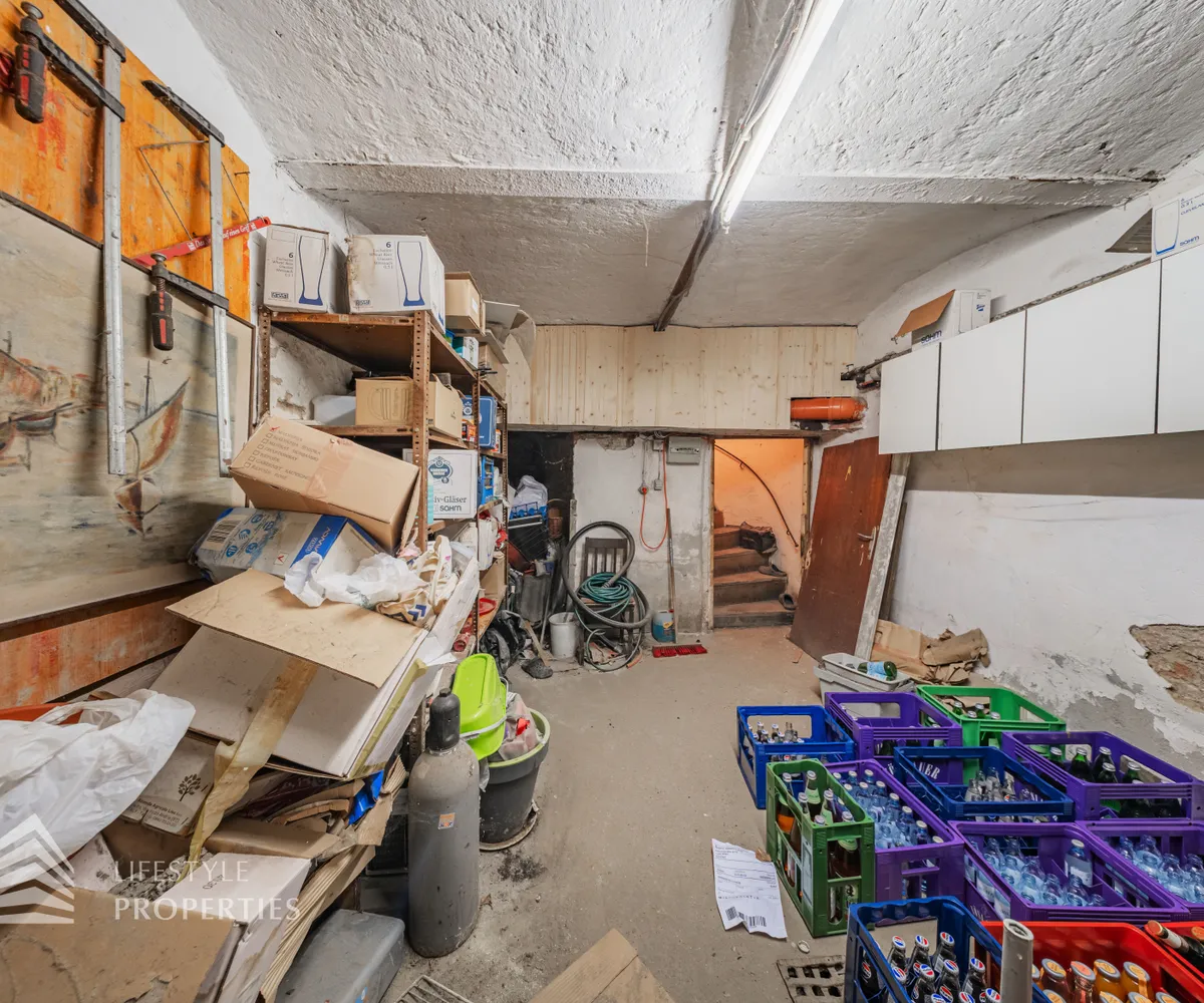 Das Lokal ist voll unterkellert (ca. 79 m²). Hier befinden sich Lagerflächen sowie Kühlräume, die den betrieblichen Ablauf ideal unterstützen.