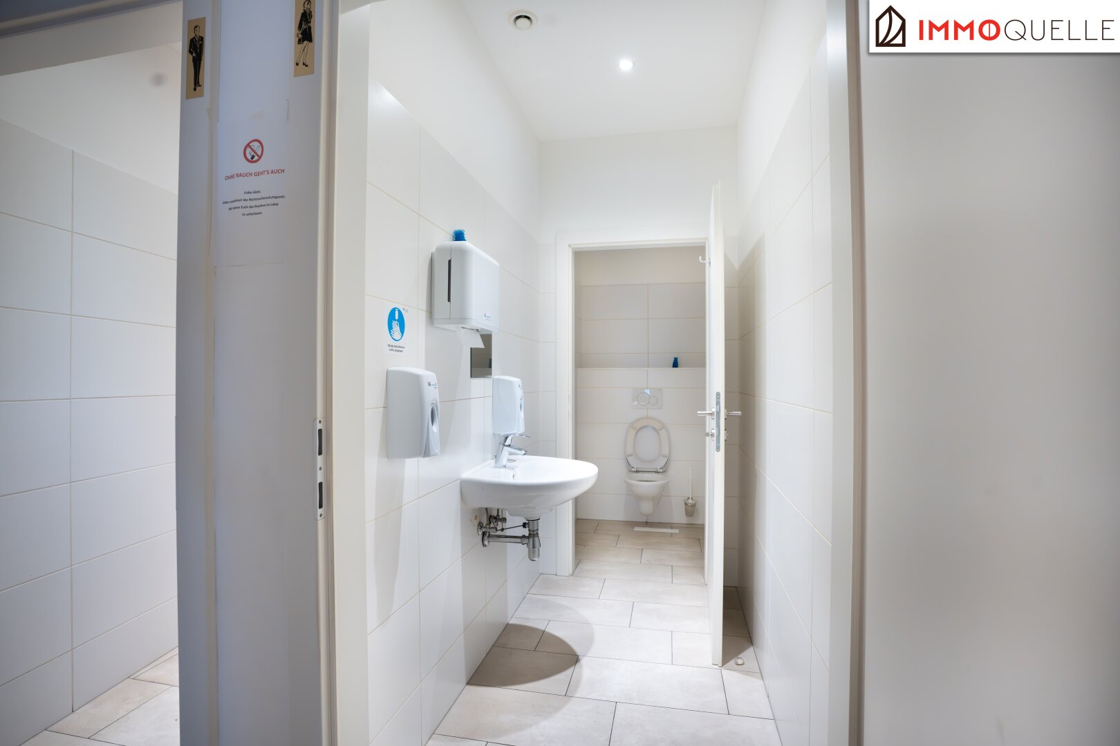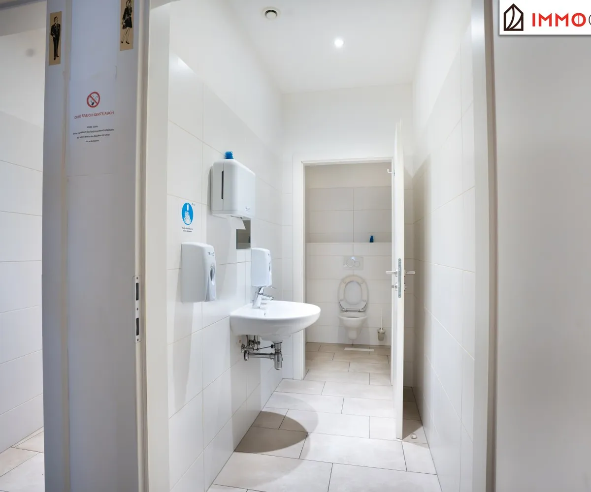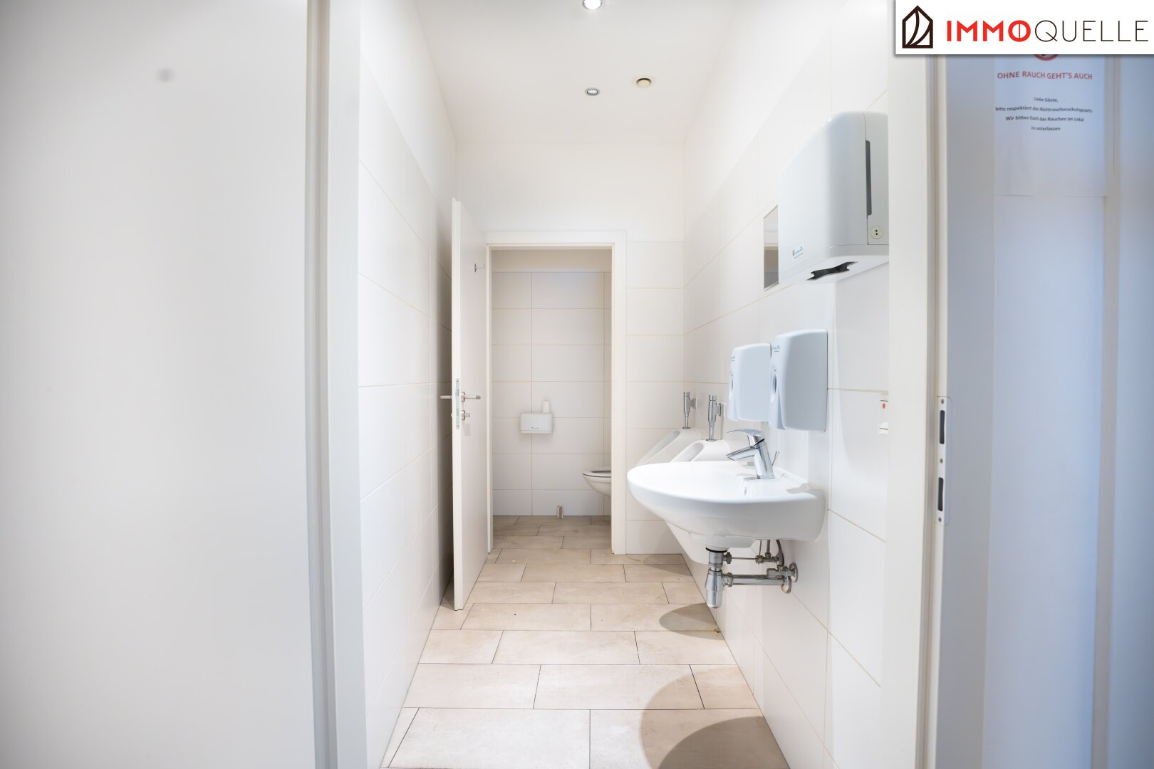 Das Geschäftslokal gliedert sich in zwei straßenseitige Gasträume mit ca. 26,14 m² und ca. 28,15 m², die gemeinsam einen stimmigen und gut strukturierbaren Gästebereich bilden. Die Anordnung entlang der Straßenfront ermöglicht eine flexible Nutzung - etwa für Bar, Sitzbereiche oder unterschiedliche Gästesettings. Vom Gastraum aus führt ein Vorraum zu den getrennten WC-Anlagen für Damen und Herren.