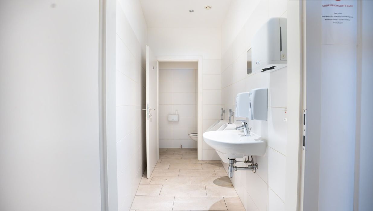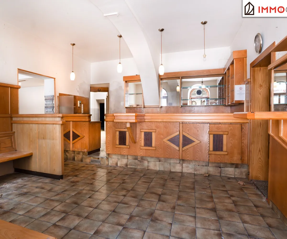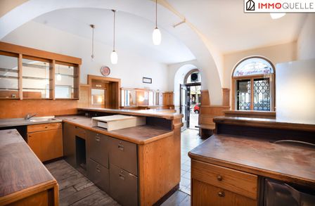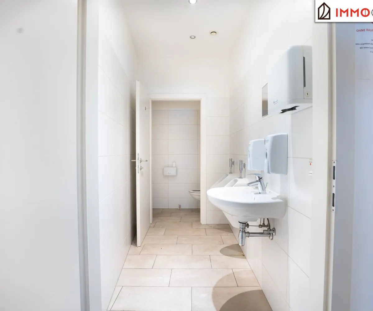 Das Geschäftslokal gliedert sich in zwei straßenseitige Gasträume mit ca. 26,14 m² und ca. 28,15 m², die gemeinsam einen stimmigen und gut strukturierbaren Gästebereich bilden. Die Anordnung entlang der Straßenfront ermöglicht eine flexible Nutzung - etwa für Bar, Sitzbereiche oder unterschiedliche Gästesettings. Vom Gastraum aus führt ein Vorraum zu den getrennten WC-Anlagen für Damen und Herren.