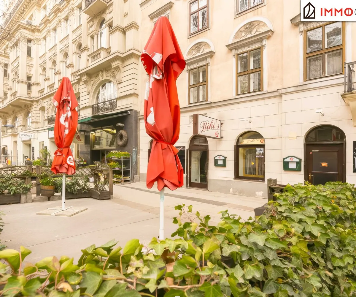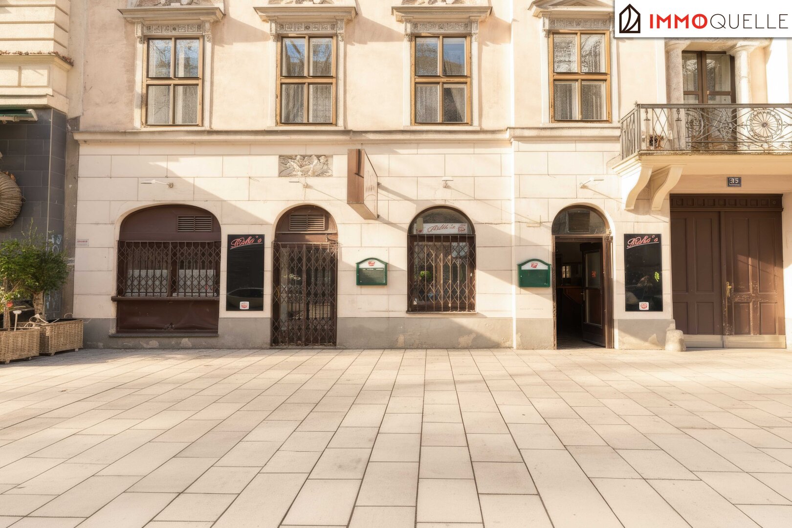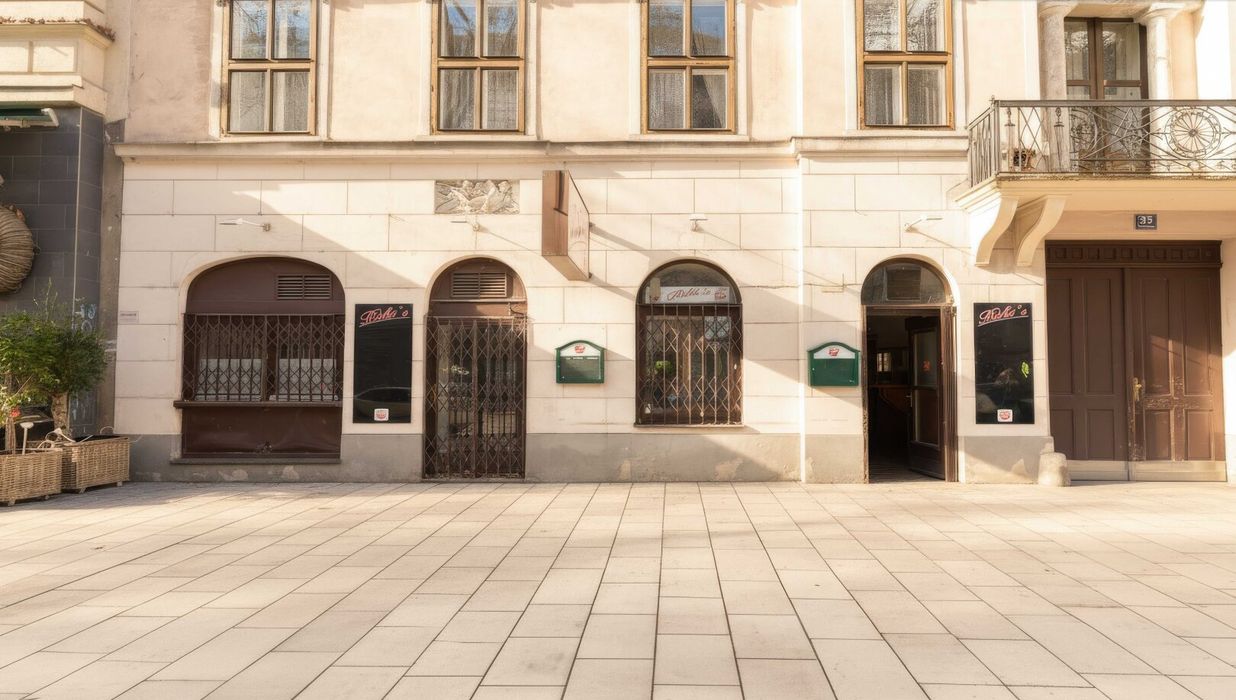 Bereits beim ersten Blick auf die Fassade wird klar: Hier trifft klassische Wiener Architektur auf unternehmerisches Potenzial. Die großzügige Straßenfront mit mehreren Zugängen schafft Präsenz und lädt Kunden beinahe ein, einzutreten.