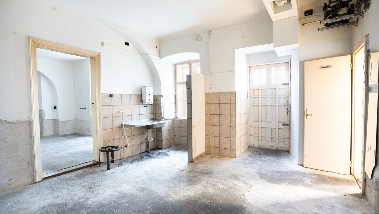 Im hinteren Bereich schließen die funktionalen Nebenflächen an: Die separate Küche mit ca. 15,12 m² ist klar vom Gästebereich getrennt und sorgt für strukturierte und reibungslose Arbeitsprozesse. Zwei funktional geschnittene Lagerräume ermöglichen effiziente Warenhaltung oder zusätzliche Arbeitsflächen - ein entscheidender Vorteil in innerstädtischer Lage.