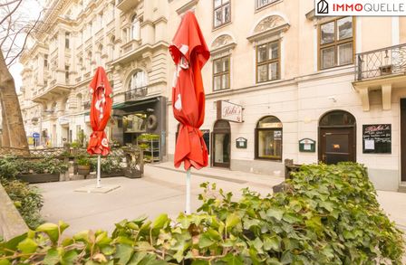 Die Fensterflächen zur Praterstraße sorgen für angenehme Belichtung und solide Sichtbarkeit im öffentlichen Raum und unterstreichen den einladenden Charakter des Lokals. So entsteht eine urbane, stimmige Gesamtwirkung mit klarem Fokus auf Aufenthaltsqualität - ideal für ein Restaurant-, Bistro- oder Cafékonzept mit eigenständiger Identität.