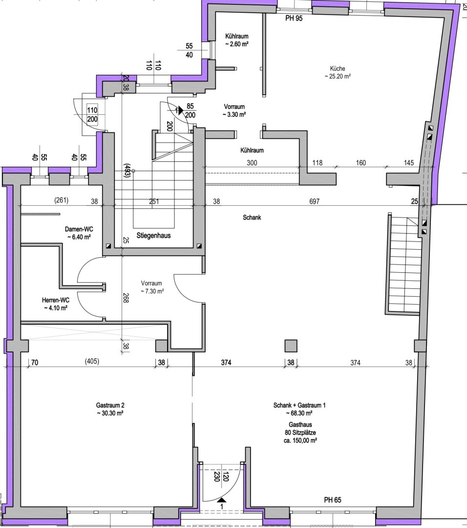 Die Geschäftsfläche befindet sich im Erdgeschoß und bietet eine Gesamtnutzfläche von ca. 211 qm (ca. 145 qm im EG / ca. 66 qm im Kellergeschoß).