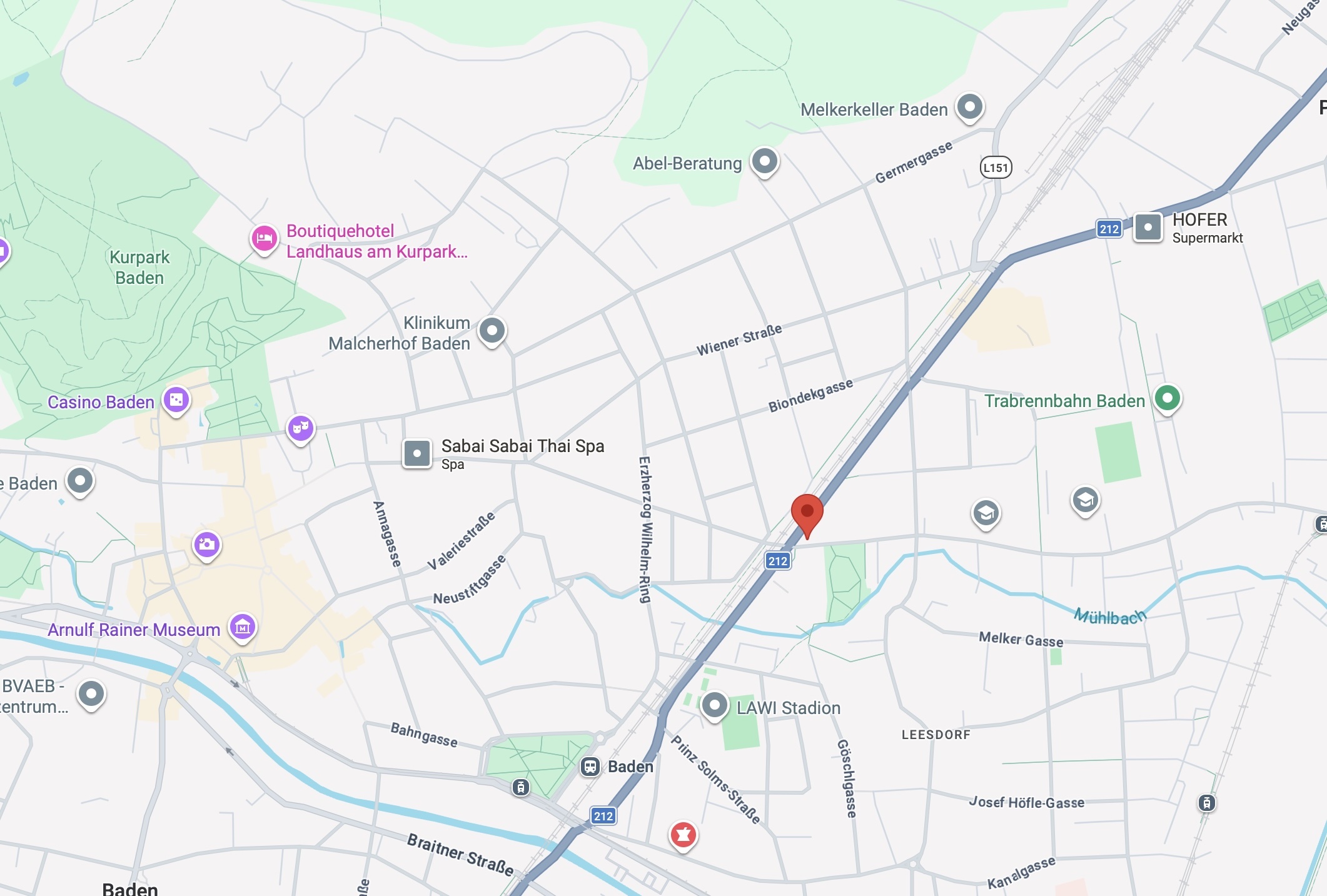 Die Liegenschaft befindet sich direkt an der Bundestrasse B212. Der Bahnhof Baden ist nur wenige Gehminuten entfernt.