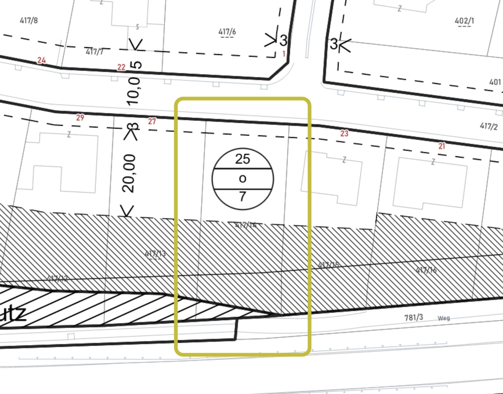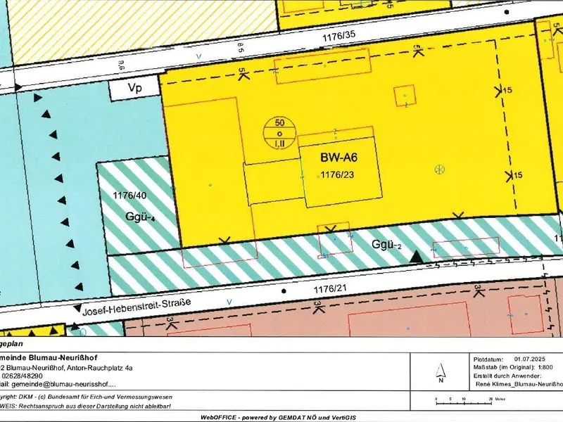 Das unerschlossene Grundstück hat die Widmung laut NÖBO Bauland-Wohngebiet, BK 7m, offene oder gekoppelte Bauweise, ohne Bau-Zwang.