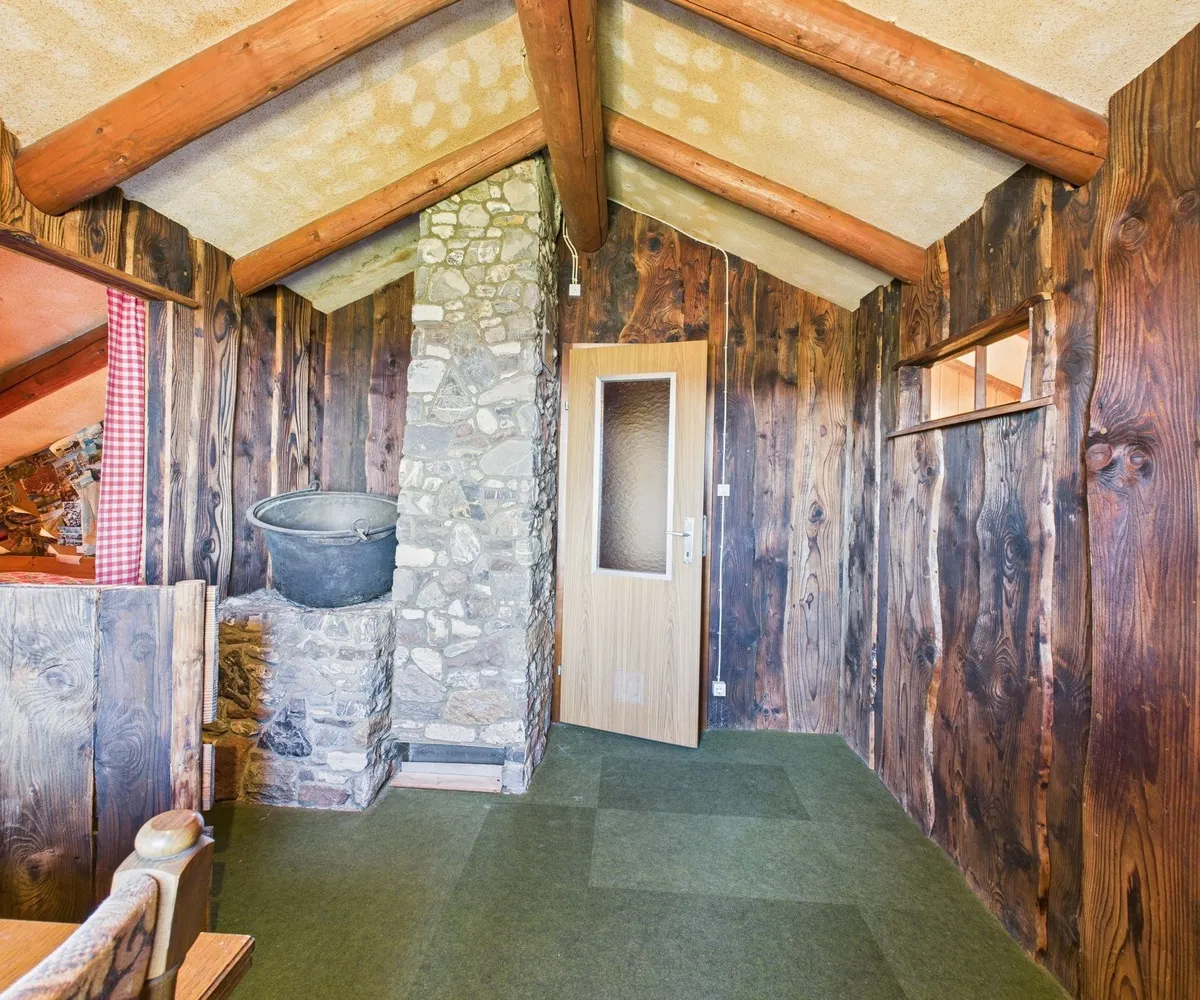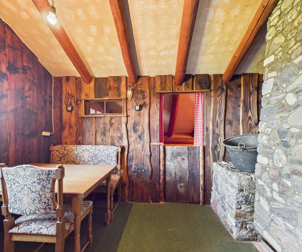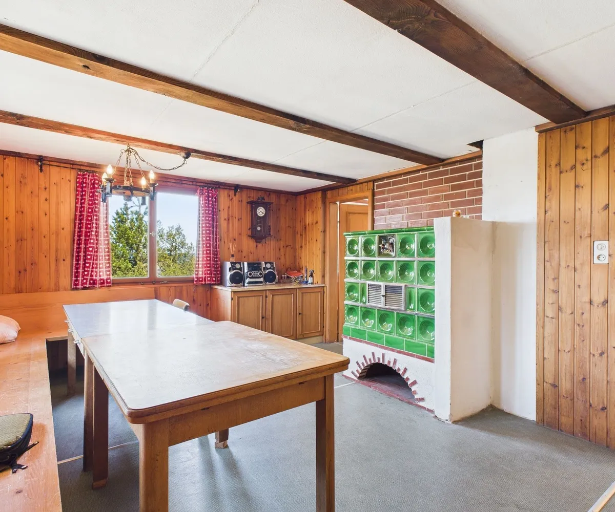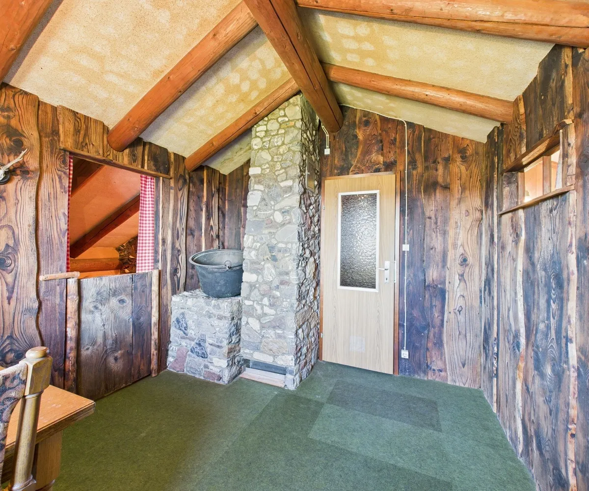 Energie: Stromanschluss vorhanden, Heizung über Holzofen