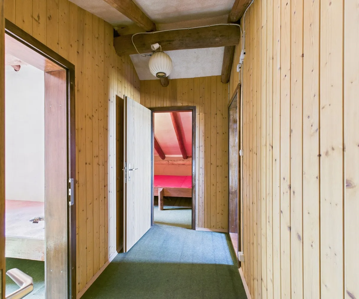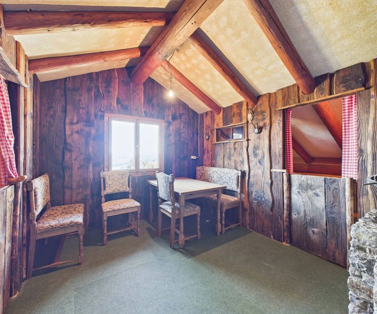 Auf dem Grundstück befindet sich eine ca. 101 m² große Ferienhütte samt Garage und Lagerraum (Zubau aus dem Jahr 1992). Das Gebäude ist sanierungsbedürftig, kann aber als Ausgangspunkt für kreative Ideen genutzt oder durch einen Neubau ersetzt werden.