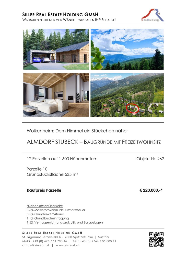 Die 12 traumhaften Baugrundstücke mit einmaliger Freizeitwohnsitznutzung auf der Sonnalm am Stubeck zeichnen sich durch ihre sehr begehrte Lage in einer der schönsten Almregionen Oberkärntens aus und liegen auf einer Seehöhe von 1.600 m.