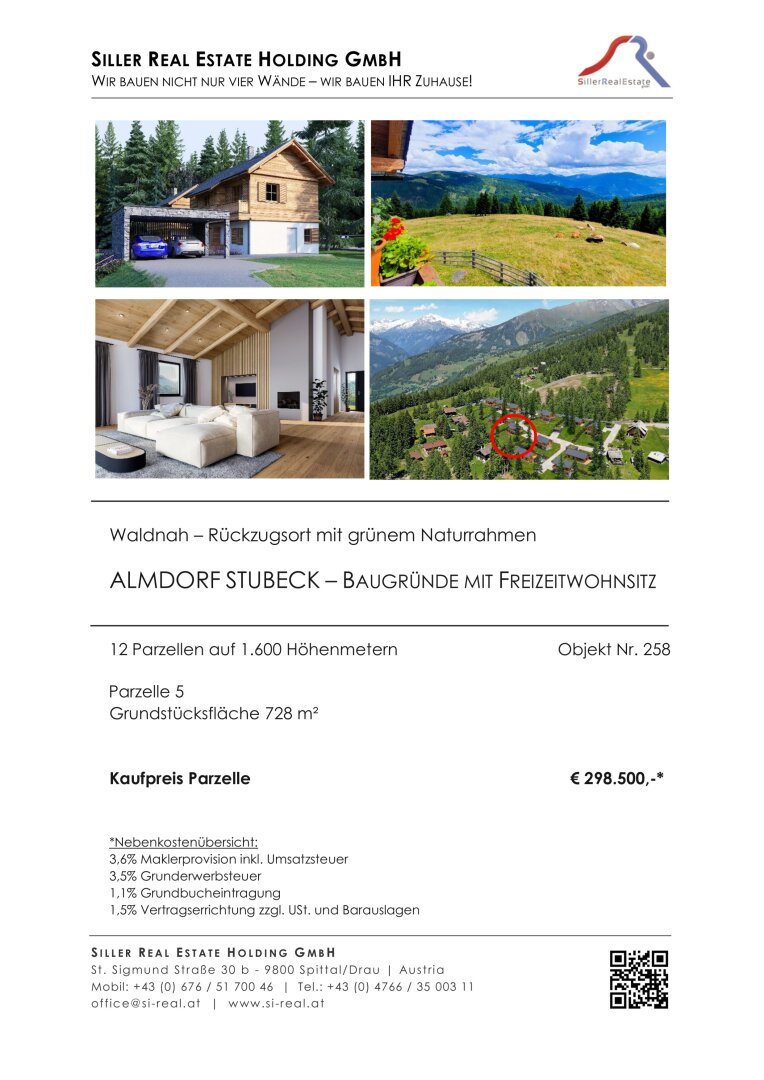 Die 12 traumhaften Baugrundstücke mit einmaliger Freizeitwohnsitznutzung auf der Sonnalm am Stubeck zeichnen sich durch ihre sehr begehrte Lage in einer der schönsten Almregionen Oberkärntens aus und liegen auf einer Seehöhe von 1.600 m.