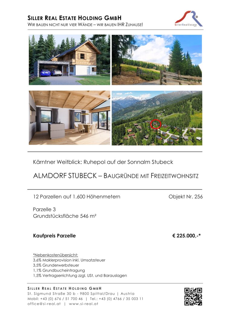 Die 12 traumhaften Baugrundstücke mit einmaliger Freizeitwohnsitznutzung auf der Sonnalm am Stubeck zeichnen sich durch ihre sehr begehrte Lage in einer der schönsten Almregionen Oberkärntens aus und liegen auf einer Seehöhe von 1.600 m.