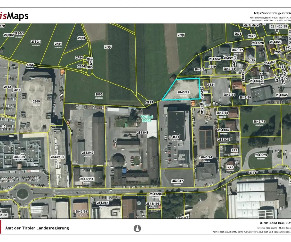 Nutzen Sie diese seltene Gelegenheit, sich dieses wertvolles Grundstück in einer der dynamischsten Wirtschaftszonen des Tiroler Oberlandes zu sichern. Das ca. 1861m² große Areal (Gst. Nr. 2843/42) besticht durch seine unmittelbare Nähe zum renommierten Q24 Business Park und bietet das perfekte Fundament für zukunftsorientierte Entwicklungen mit Weitblick.