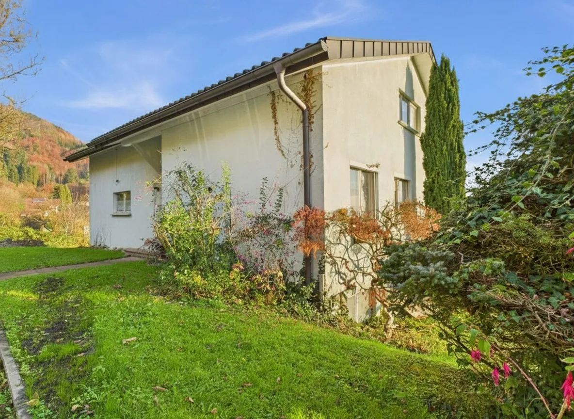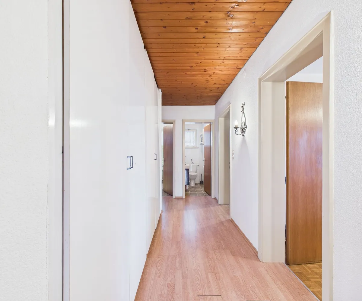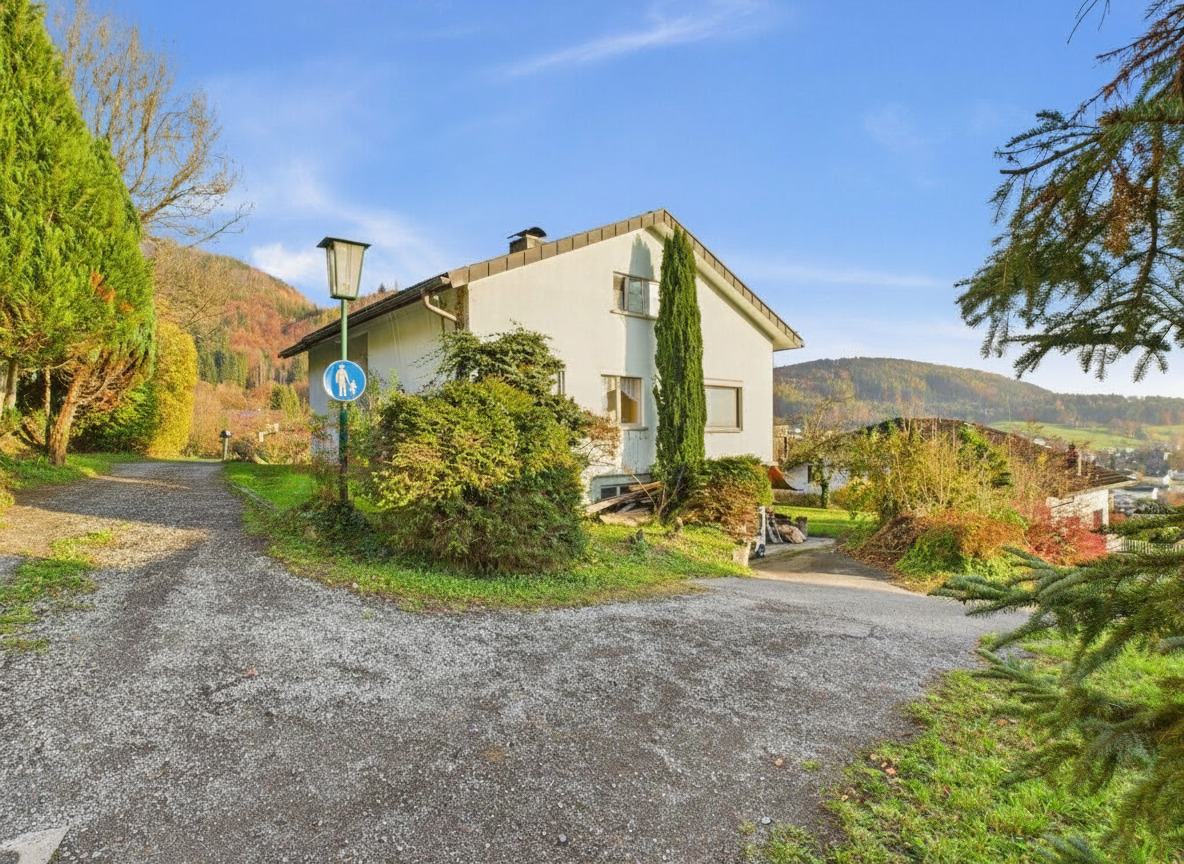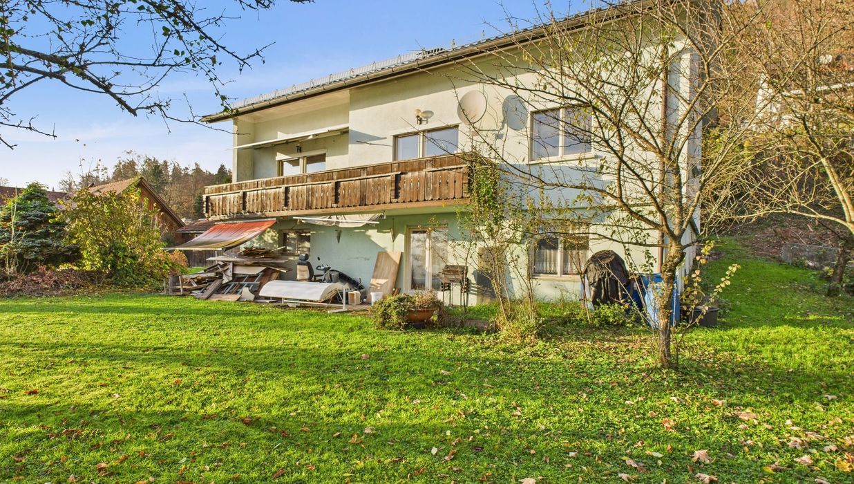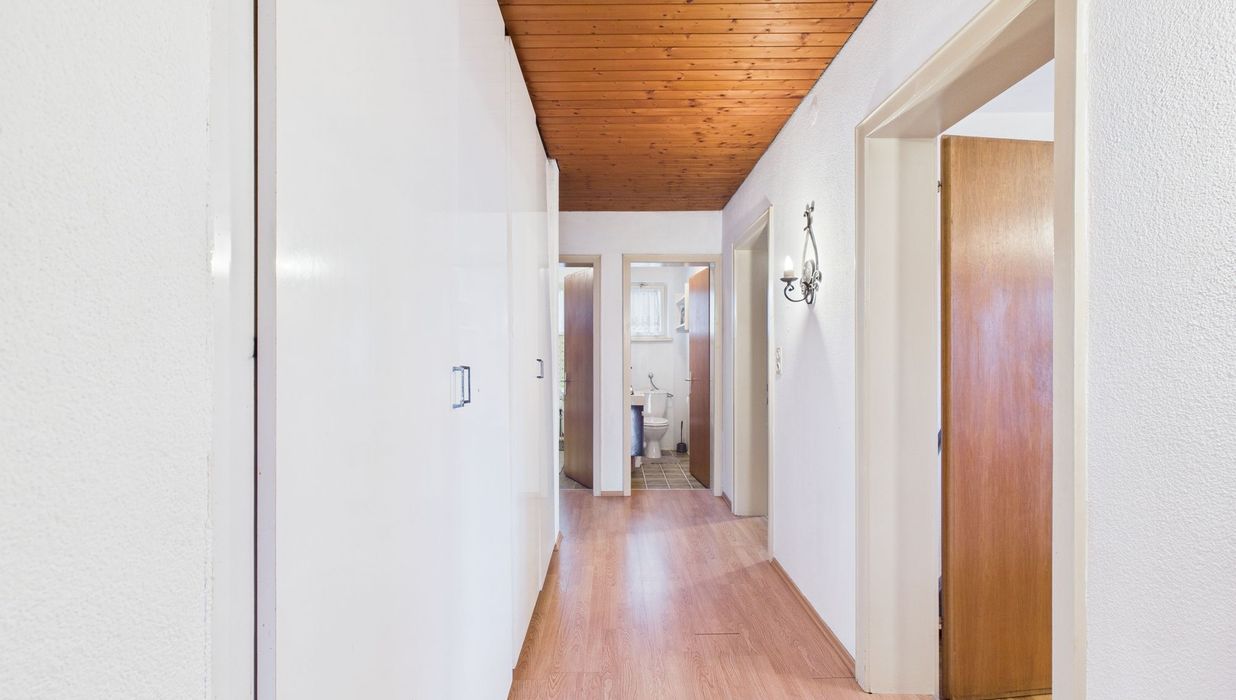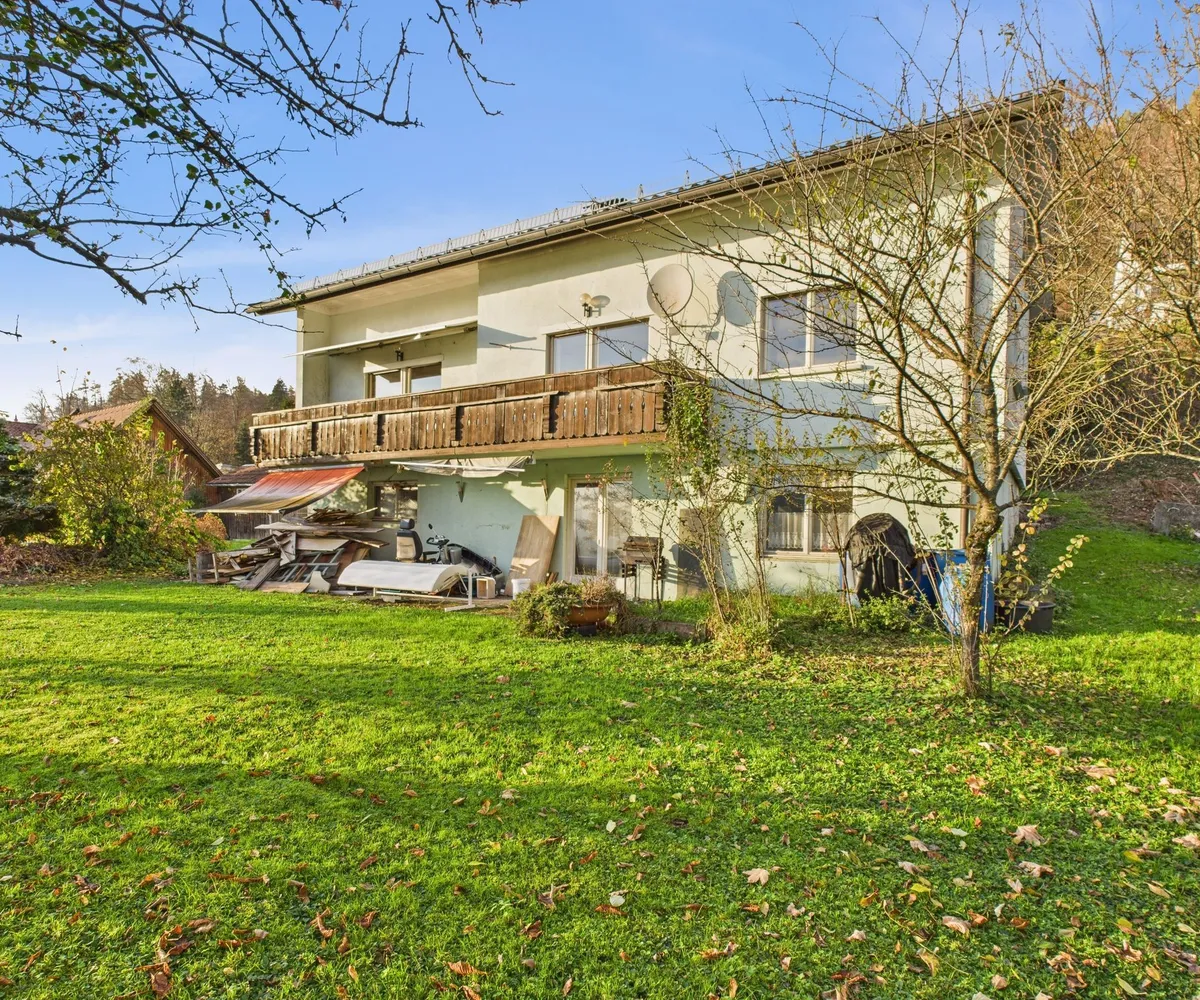 Das Anwesen ist mit einem Altbestand aus dem Jahr 1966 bebaut. Dieser befindet sich in einem renovierungsbedürftigen Zustand, überzeugt jedoch mit einem durchdachten Grundriss und großzügigem Platzangebot für individuelle Gestaltungsmöglichkeiten.