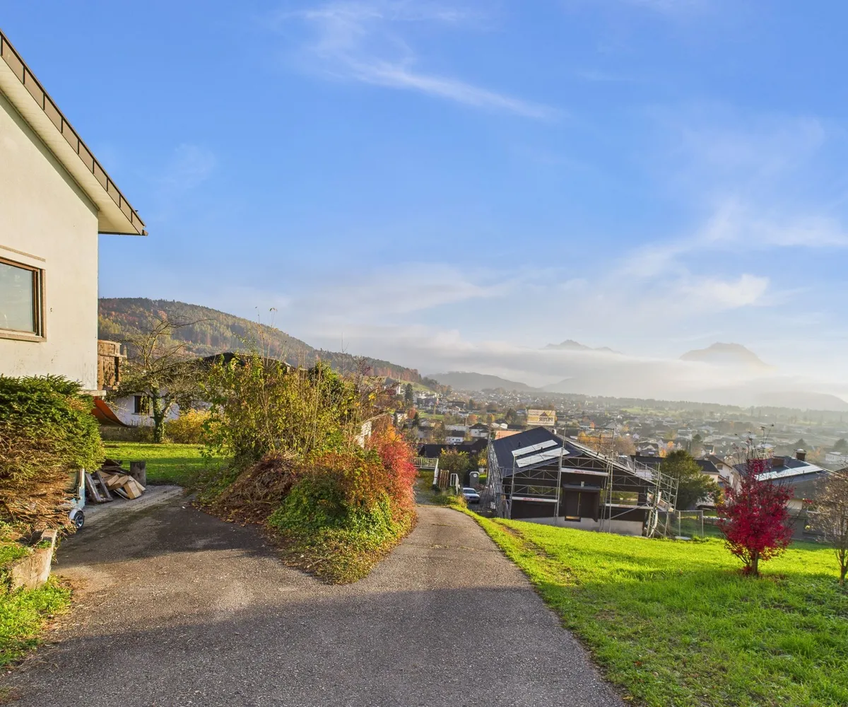 In Klaus, am begehrten Bruderhof 12, erwartet Sie ein Grundstück, das Ruhe, Privatsphäre und Weitblick vereint. Die sonnige Hanglage bietet eine unvergleichliche Aussicht über das Rheintal – ein Ort, an dem man die Seele baumeln lassen kann.