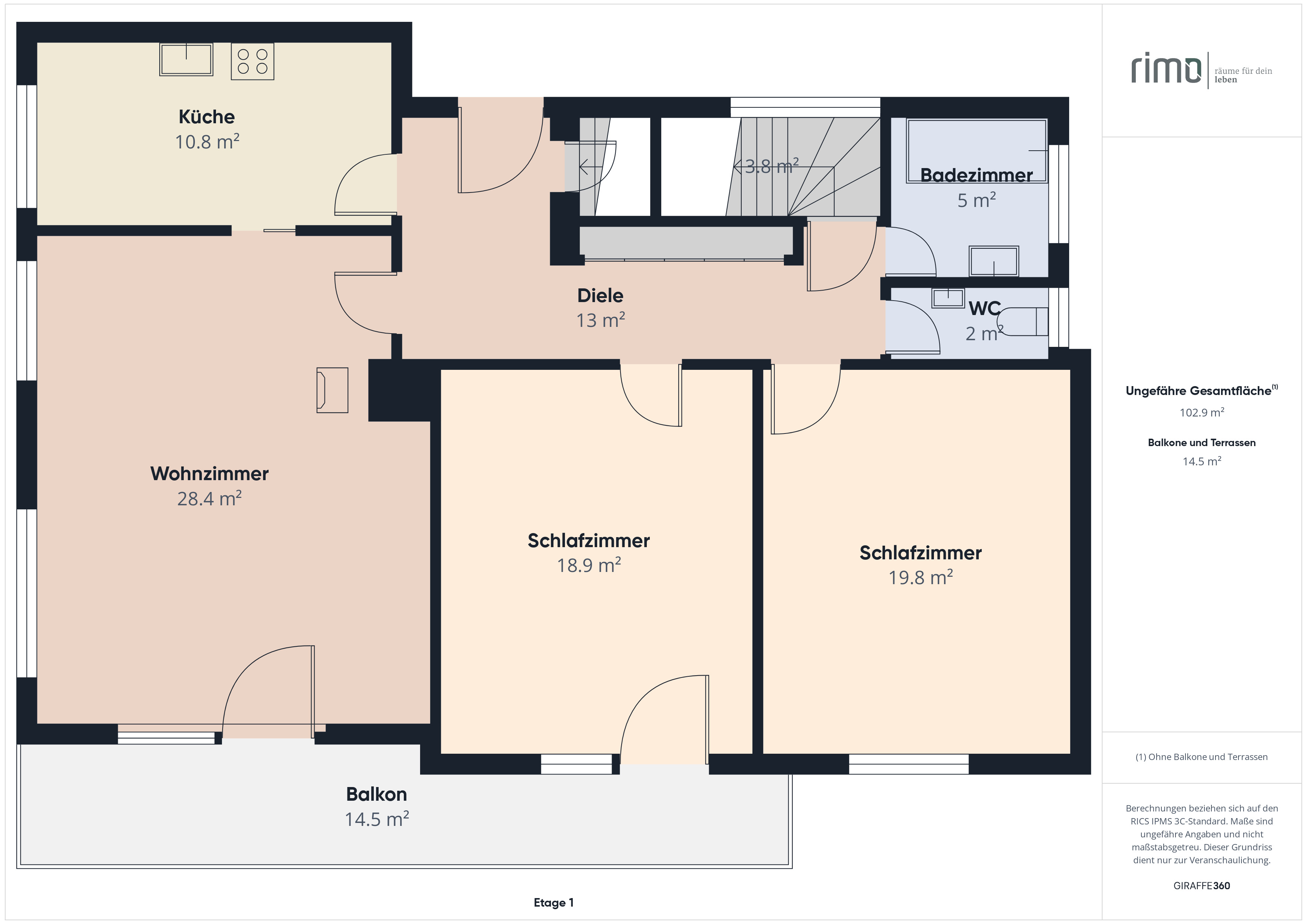 Die Maße und Angaben der Grundrisse sind ungefähre Angaben. Sie dienen nur zur Veranschaulichung.
