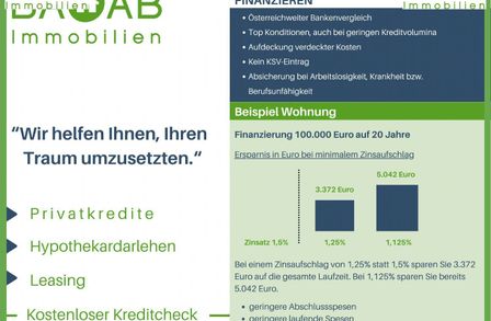 *Der Vertrag kommt nicht mit der INFINA Credit Broker GmbH zustande. Das Objekt wird von einem externen Immobilienunternehmen angeboten. Allfällige aus dem Vertragsabschluss resultierende Rechte sind ausschließlich gegenüber dem anbietenden Immobilienunternehmen geltend zu machen. Wir weisen Sie darauf hin, dass die gemachten Angaben und Informationen lediglich unverbindliche Vorabinformationen sind und daher ohne Gewähr erfolgen. Der Vermittler ist als Doppelmakler tätig.