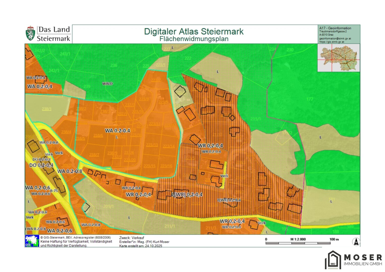 Die Widmung Wohngebiet/Allgemein weißt für die Baugrundstücke eine Geschossflächenzahl (GFZ) von 0,2–0,4 auf, ideal für die Verwirklichung des Eigenheims für die ganze Familie.