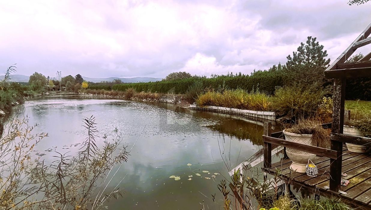 Alleinlage inmitten von Feldern - im Bereich des Teiches uneinsichtig durch eine Hecke - und dennoch in gerade einmal 6 Minuten auf der S31 und in 10 Minuten in Eisenstadt.
