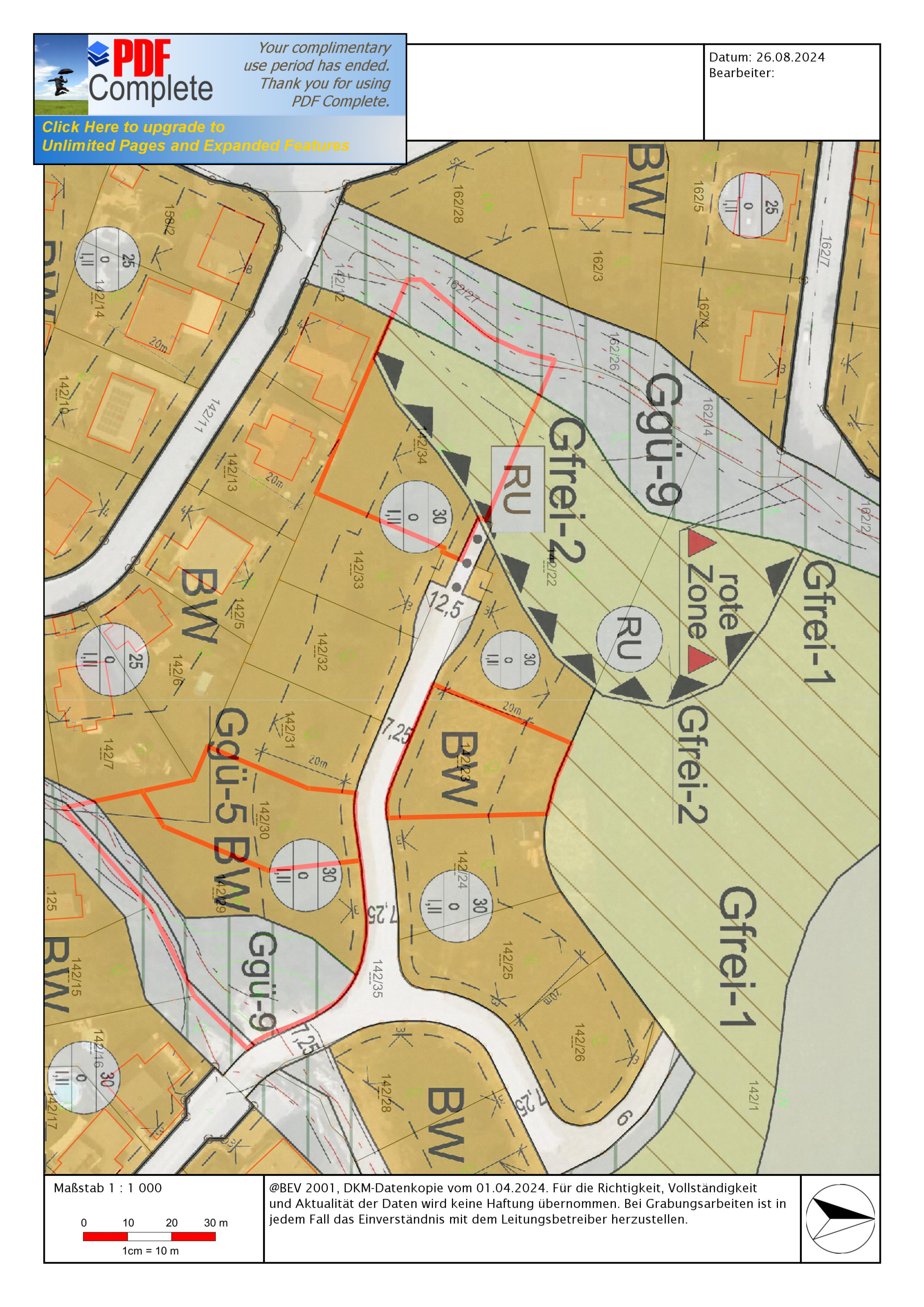 * Bauland 900 m² bebaubar davon 331 m², Grünlandanteil 1017 m²