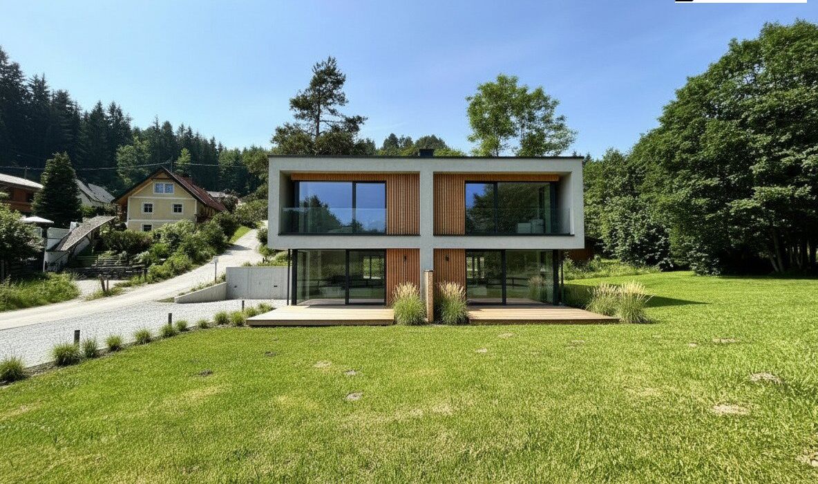 Obwohl die Autobahn hervorragend angebunden ist, bleibt sie akustisch fern. Der angrenzende Bachlauf und die Nähe zum Wörthersee schenken dem Grundstück einen einzigartigen, naturverbundenen Charakter.