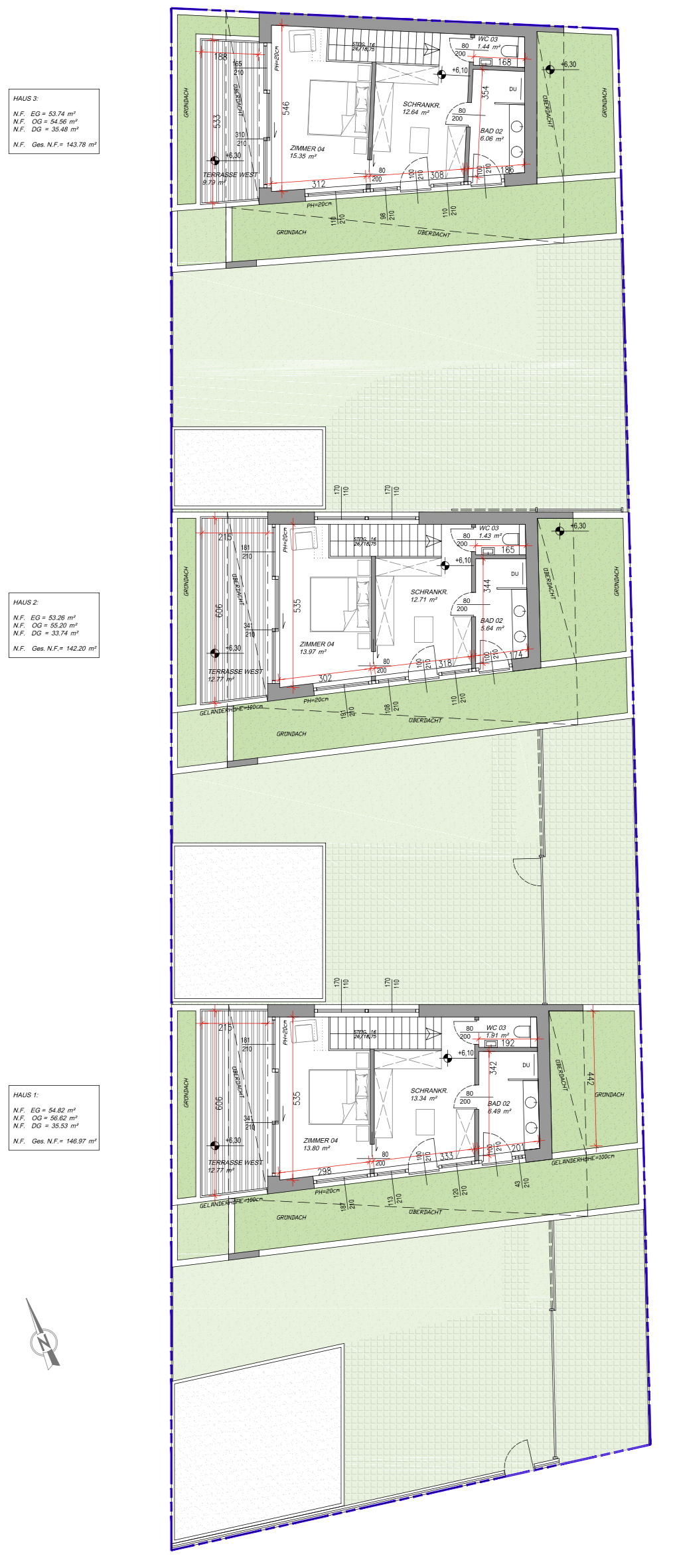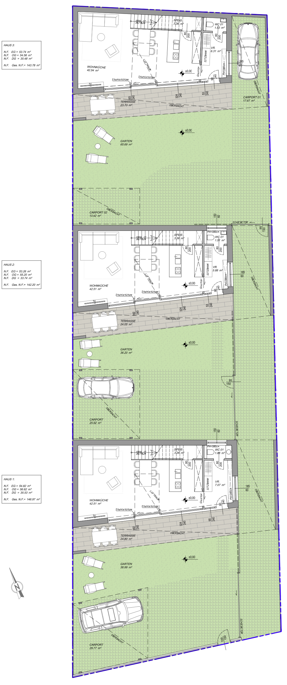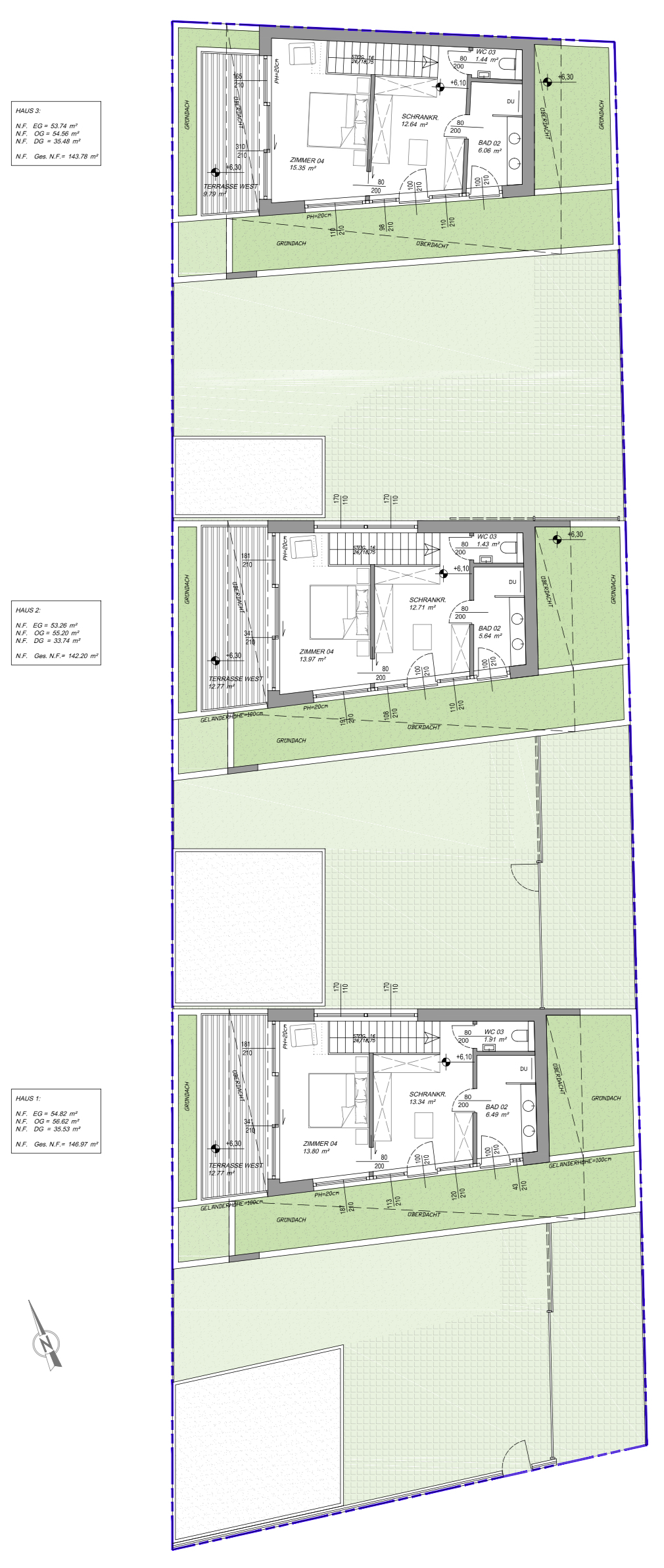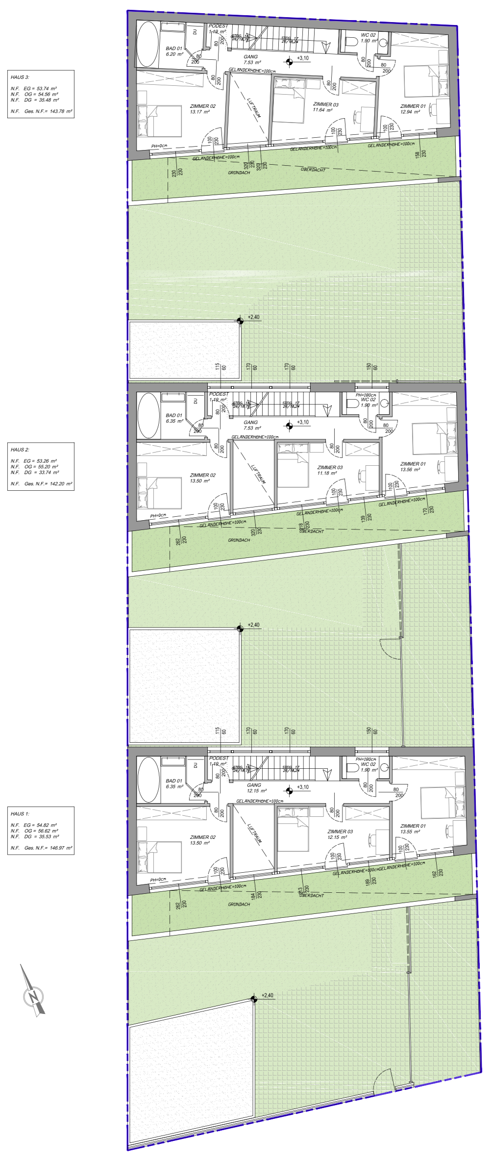 Genehmigter Einreichplan für 3 Einfamilienhäusern