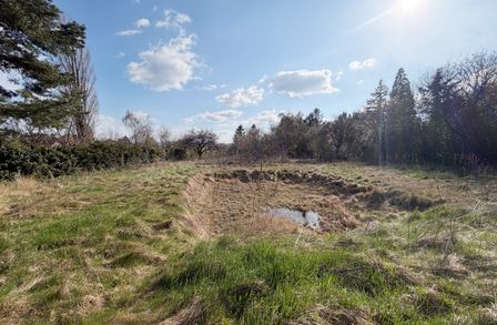 Das Grundstück ist bereits bestandsfrei, da der Abriss des Altbestandsgebäudes bereits erfolgt ist. Eine erste Planung sieht eine Bebauung mit rund 620 m² Wohnfläche, aufgeteilt auf zwei Baukörper, sowie über 1.000 m² Keller- und Garagenflächen vor.