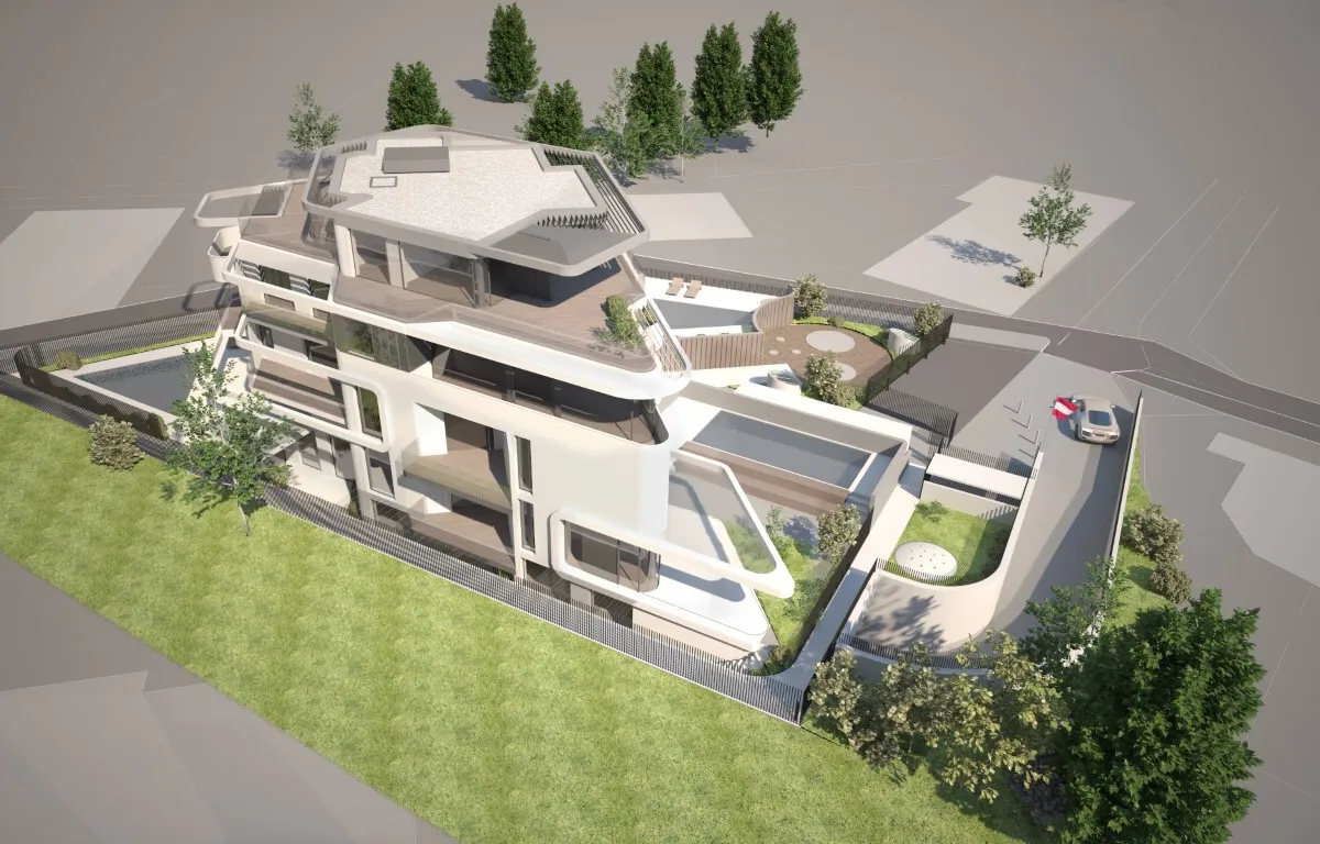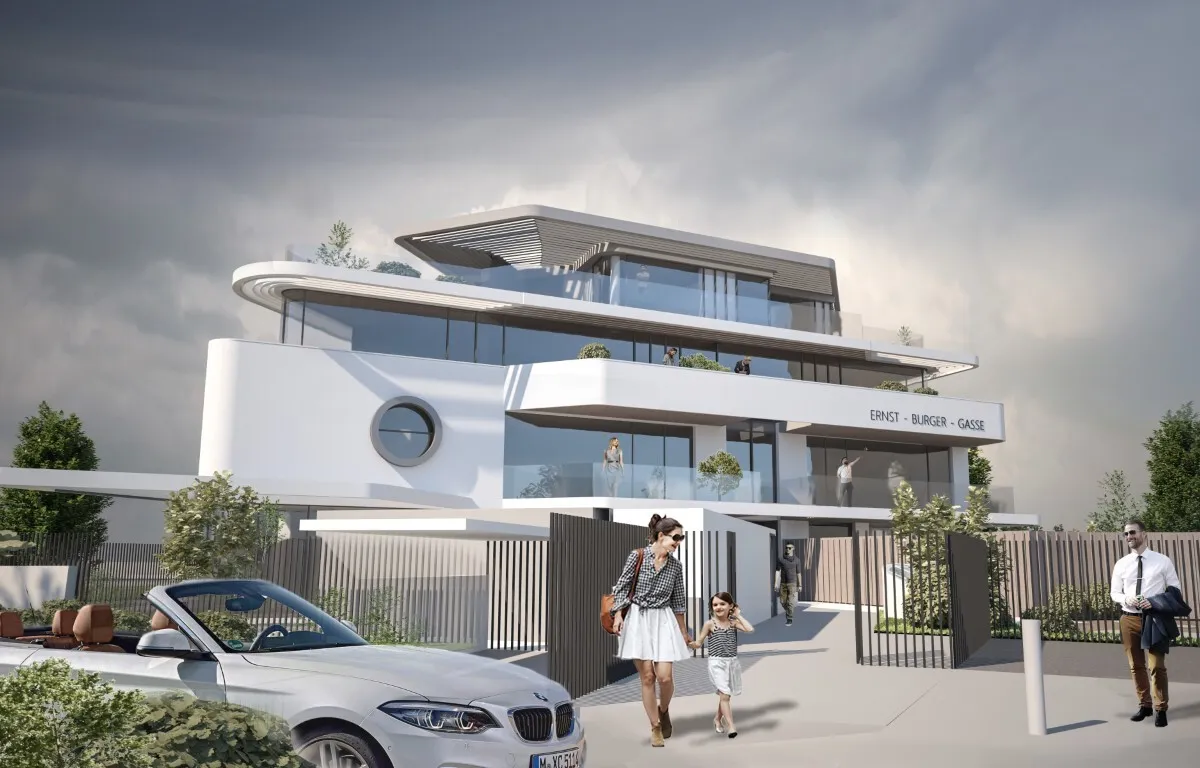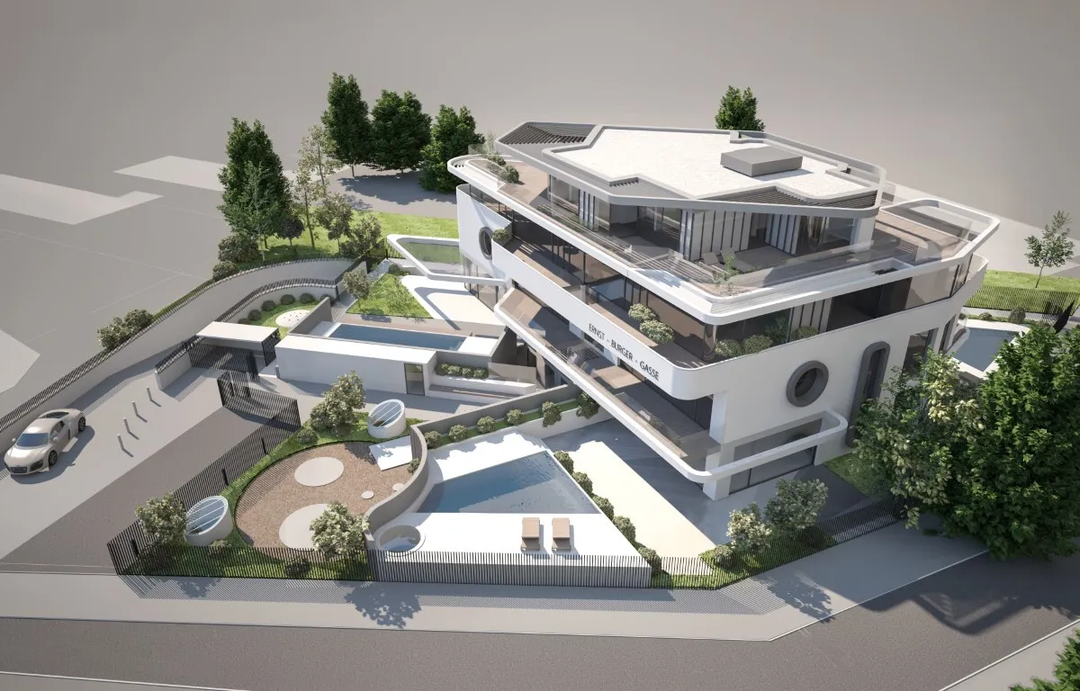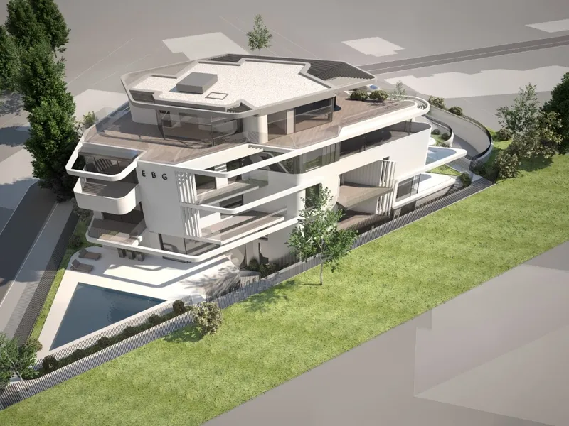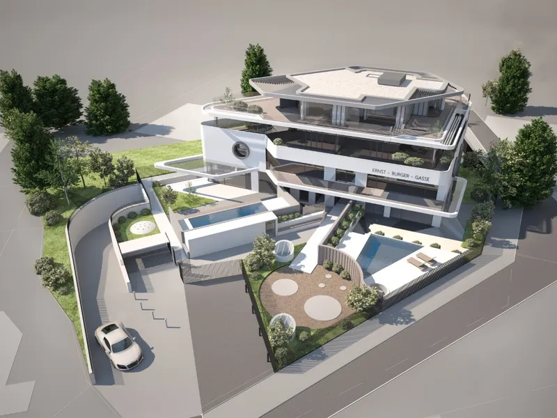 Auf einer Grundstücksfläche von ca. 1.542 m 2 wurde bereits der Bau eines 4-stöckigen Wohnhauses mit 13 Wohneinheiten mit jeweils einer Außenfläche genehmigt. Die Wohnfläche der jeweiligen Wohnungen liegt bei ca. 44 m 2 bis ca. 131 m 2 . Bei den Außenflächen handelt es sich bei den Wohneinheiten im Erdgeschoss um Eigengärten und privaten Pools, sowie bei allen weiteren Wohnungen um Balkone, Terrassen oder Dachterrassen. Ebenso werden im Untergeschoss 10 Garagenplätze sowie Einlagerungsräume für alle Wohneinheiten und Fahrrad-Abstellplätze errichtet.