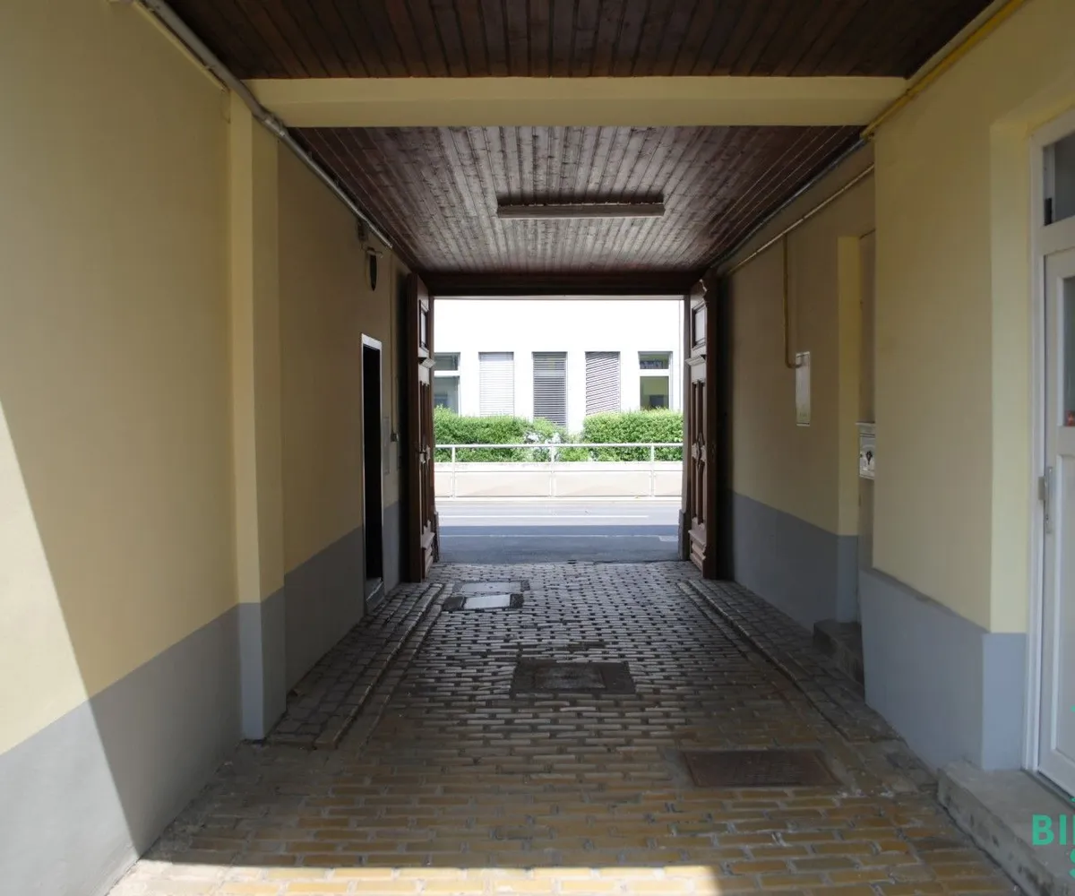 Über die Einfahrt erreicht man bequem den Innenhof, der genügend Parkmöglichkeiten bereit hält.