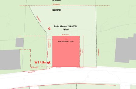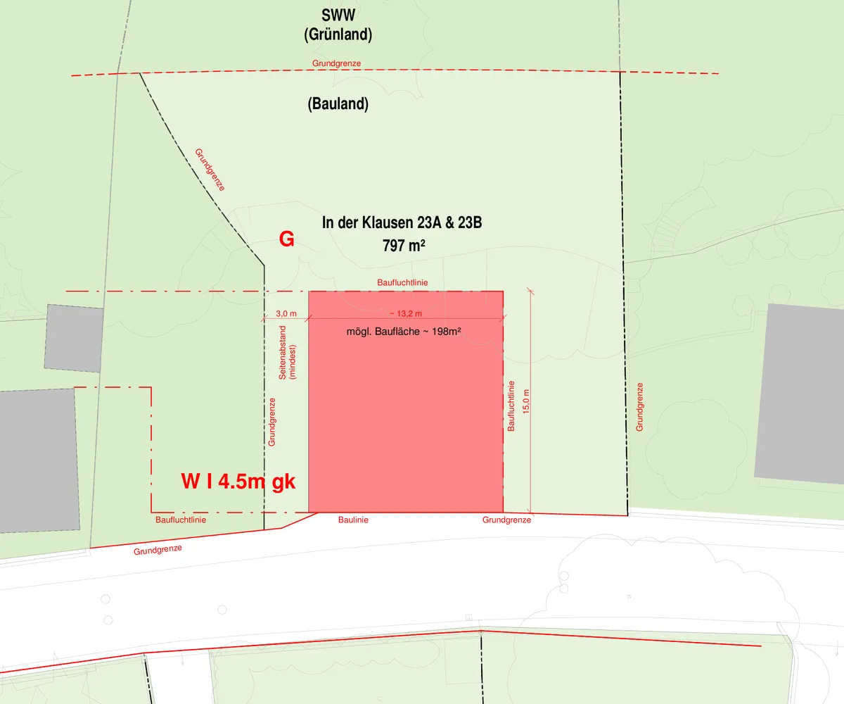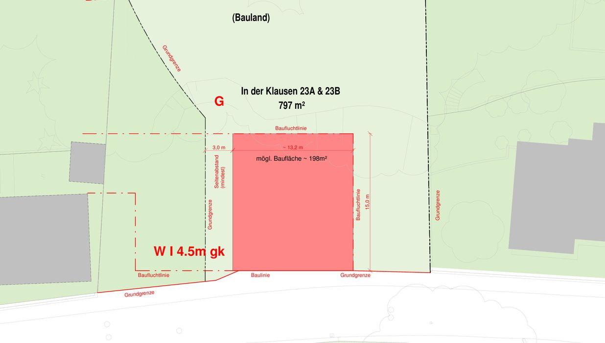 Bauklasse W I 4,5m (EG mit Garten + ausgebautes Dachgeschoß) PKW-Stellplatz auf Eigengrund möglich!