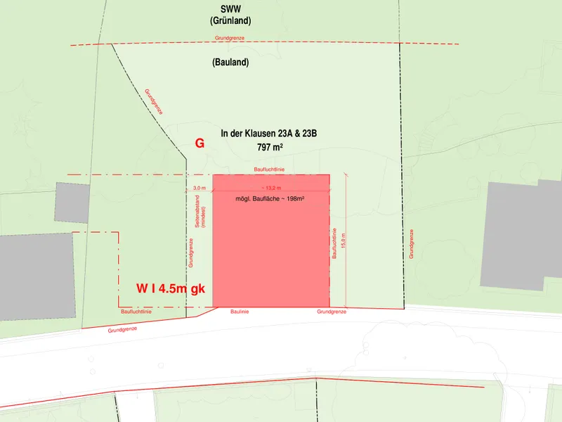 797m² um € 826.000,- (Gesamt 4.340m² mit Grünland-Park/Wald)