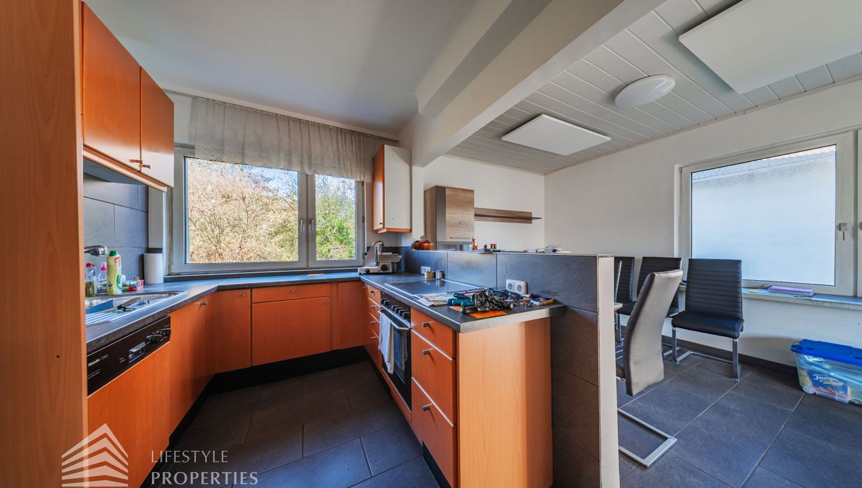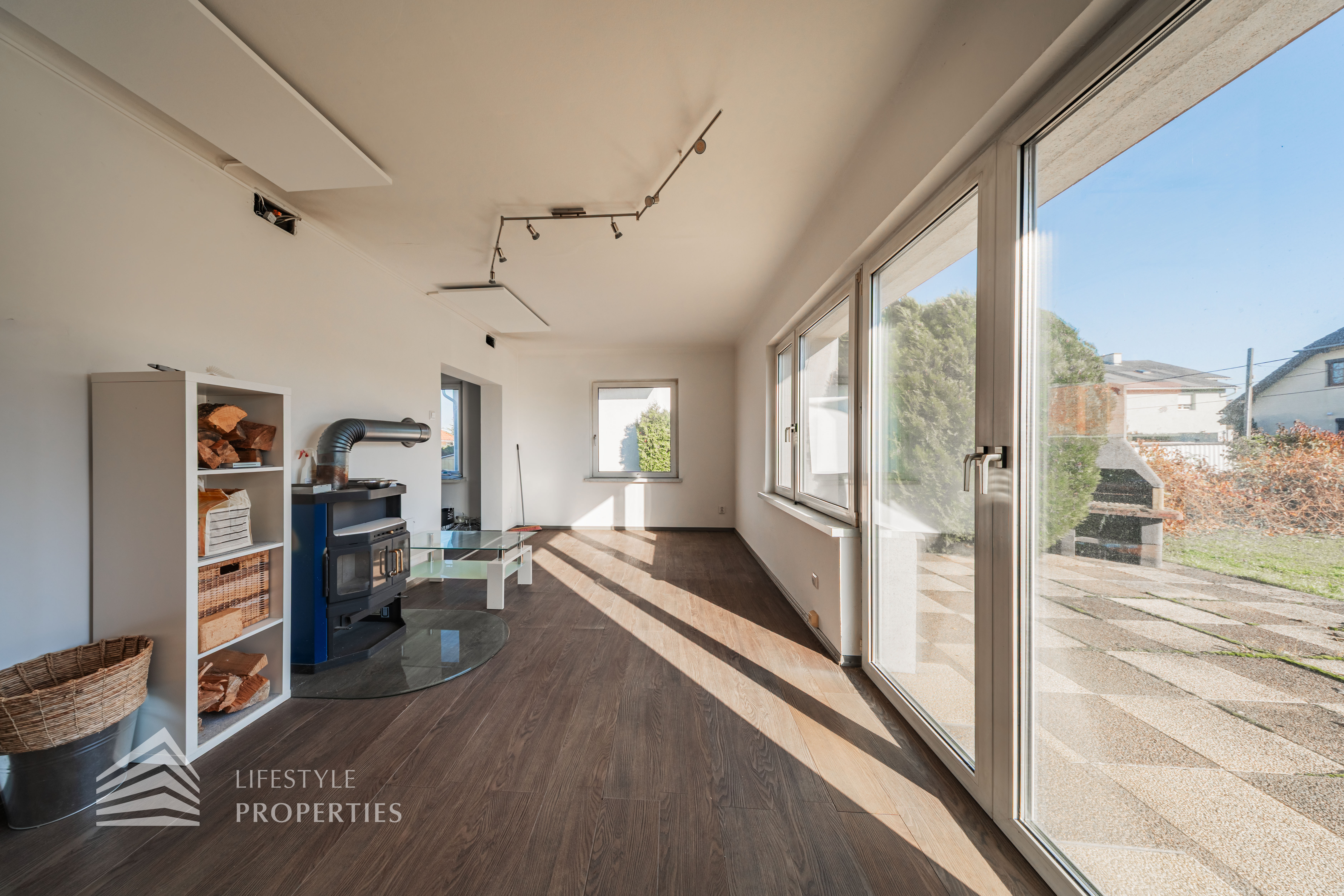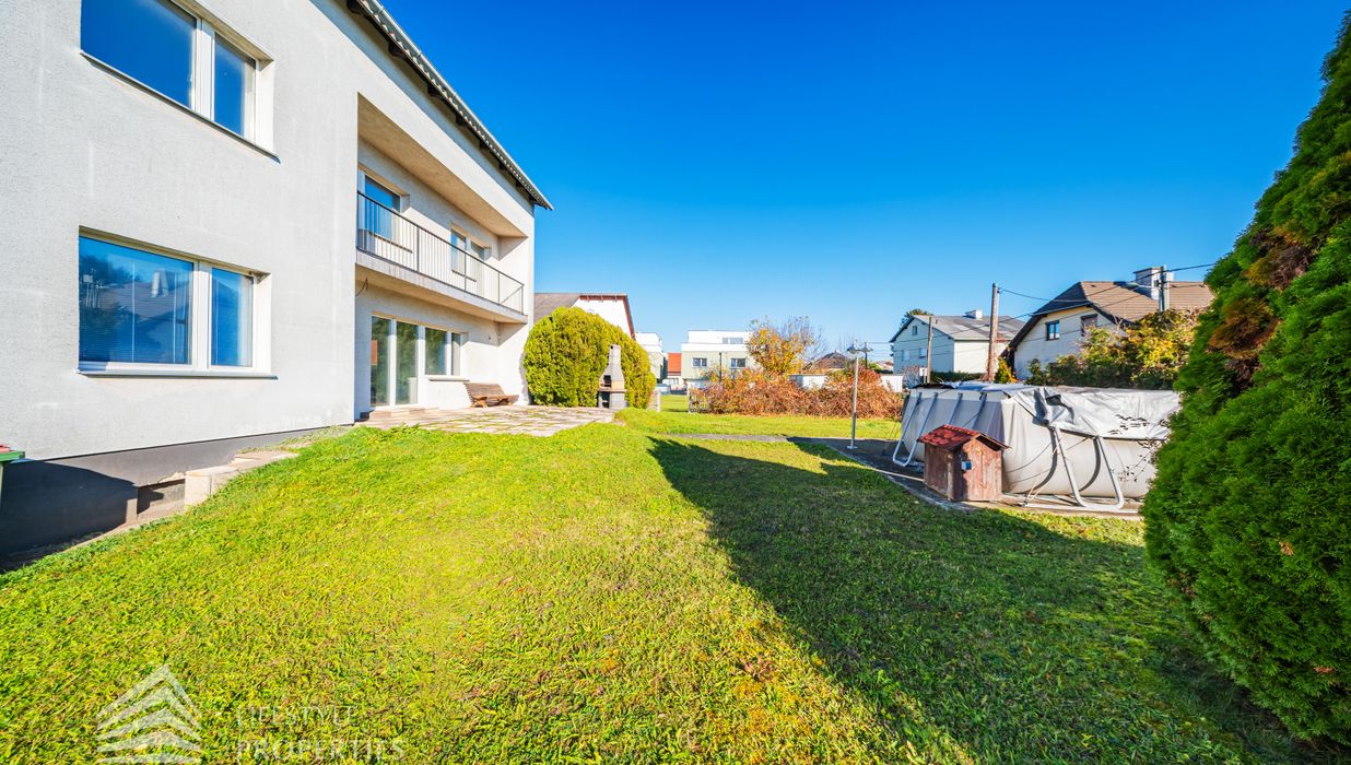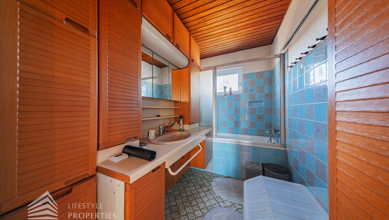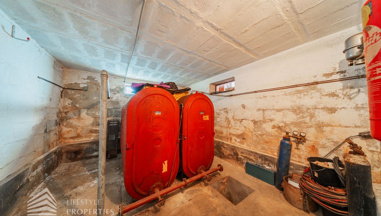 Der Außenbereich besteht aus einem großzügigen Garten mit rund 840 m² sowie einer Garage von etwa 60 m² und zusätzlichen Stellplätzen. Die Heizung erfolgt über eine Zentralheizung, betrieben mit Öl und Elektro. Aufgrund des guten Zustands des Bestandsgebäudes ist sowohl eine sofortige Nutzung als auch ein schrittweises Entwicklungsmodell möglich.