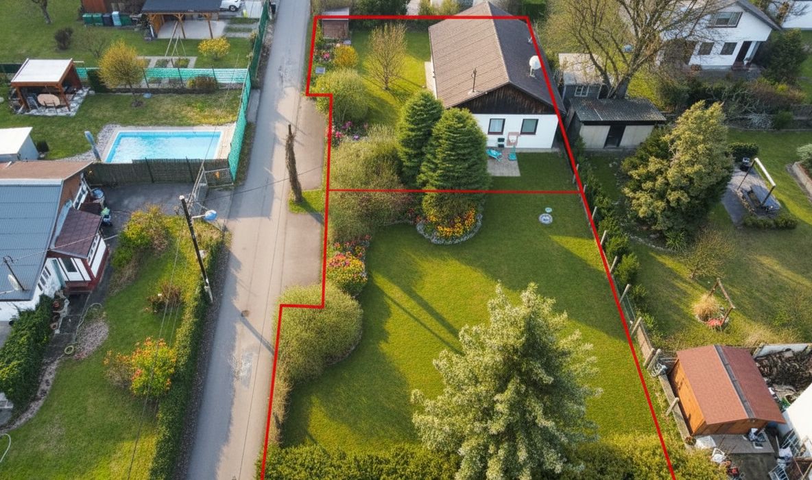Aktuell befindet sich auf einem der Grundstücke ein kleines, ebenerdiges und nicht unterkellertes Häuschen, das zwar bis vor Kurzem bewohnt war, jedoch nicht mehr dem heutigen Baustandard entspricht.
